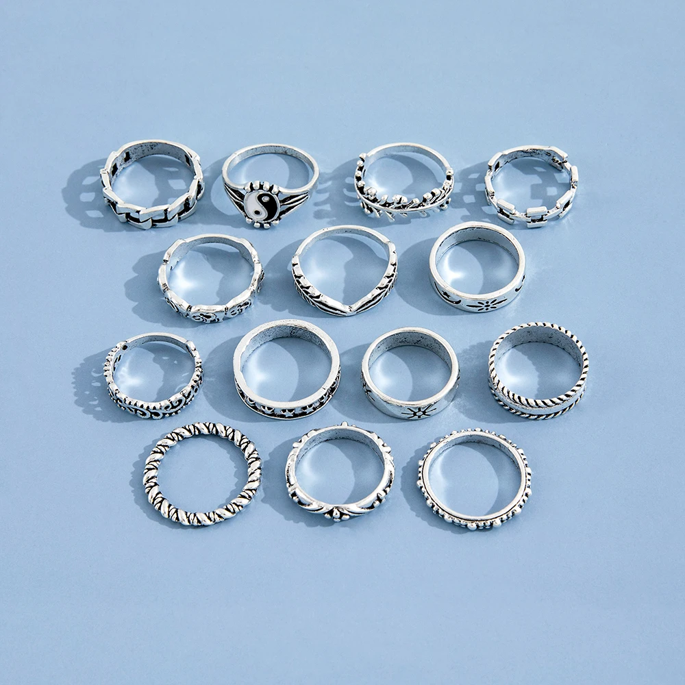 Sindlan 14 шт. готические серебряные кольца Тай Чи для женщин Бохо ...
