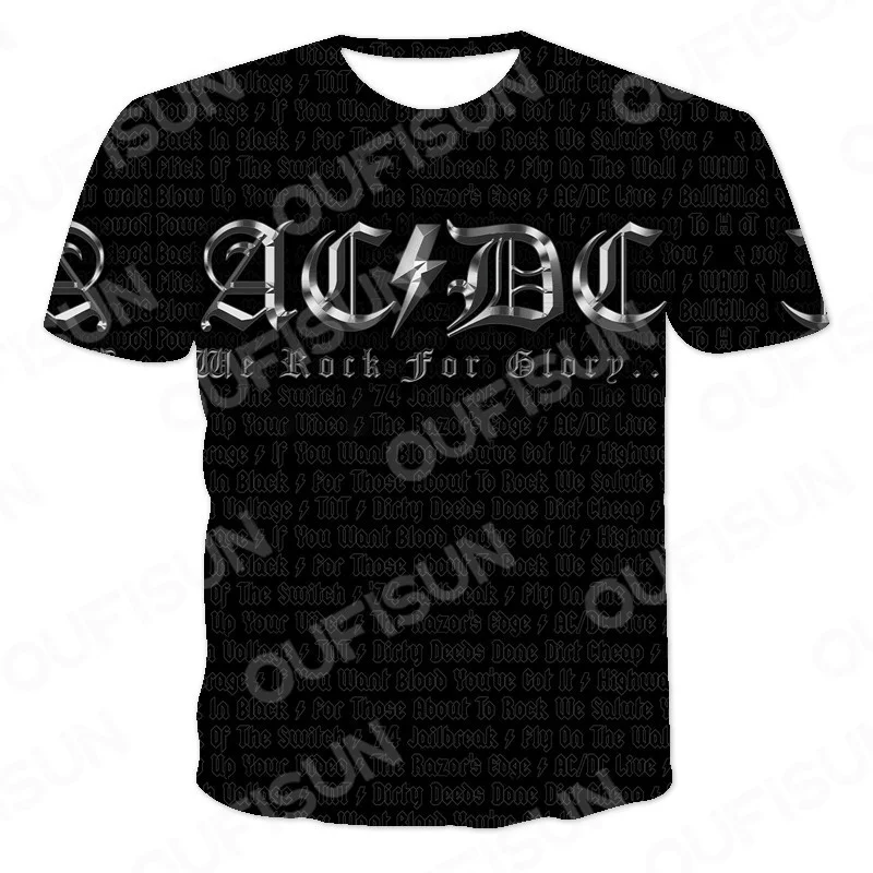 Летняя новая стильная мужская футболка с 3D принтом AC DC рок мужские модные топы с коротким рукавом мужские повседневные футболки с круглым вырезом топ с принтом