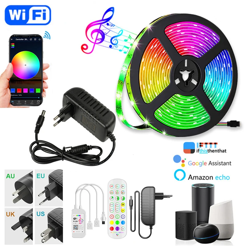 Высокая интенсивность и надежностьНизкое энергопотребление Супер-яркий, но работает при низкой температуреВсе светильник распространился и полностью ровныйСрок службы 5000 часовИК-пульт может удалять только расстояние 5 м, но пульт wifi может удалять любое расстояние, которое вам нужно, вы можете управлять им с помощью приложения для смартфонаПосылка включает:Полный комплект 50505 м = 1*5 м/рулон + 1 * ИК/wifi /Bluetooth пульт дистанционного управления (без батареи) + 1 * Адаптер питания DC12V10 м = 1*10 м/рулон + 1 * ИК/wifi /Bluetooth пульт дистанционного управления (без батареи) + 1 * Адаптер питания DC12V15 м = 1*15 м/рулон + 1 * ИК/wifi /Bluetooth пульт дистанционного управления (без батареи) + 1 * Адаптер питания DC12V20 м = 2*10 м/рулон + 1 * ИК/wifi /Bluetooth пульт дистанционного управления (без батареи) + 1 * Адаптер питания DC12V25 м = 1*10 м/рулон + 1*15 м/рулон + 1 * ИК/wifi /Bluetooth пульт дистанционного управления (без батареи) + 1 * Адаптер питания DC12V30m = 2*15M/rol + 1 * IR/wifi /Bluetooth пульт дистанционного управления (без батареи) + 1 * Адаптер питания DC12V