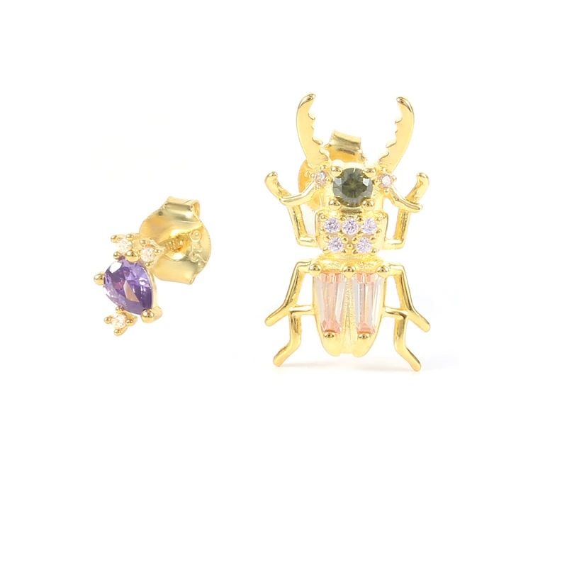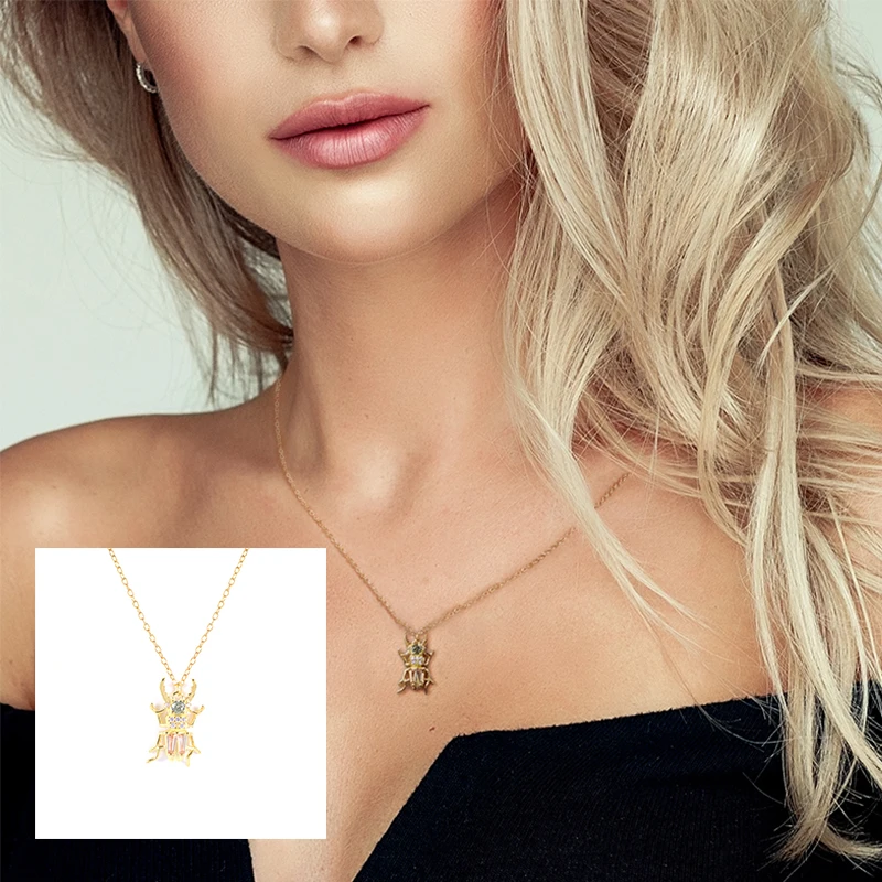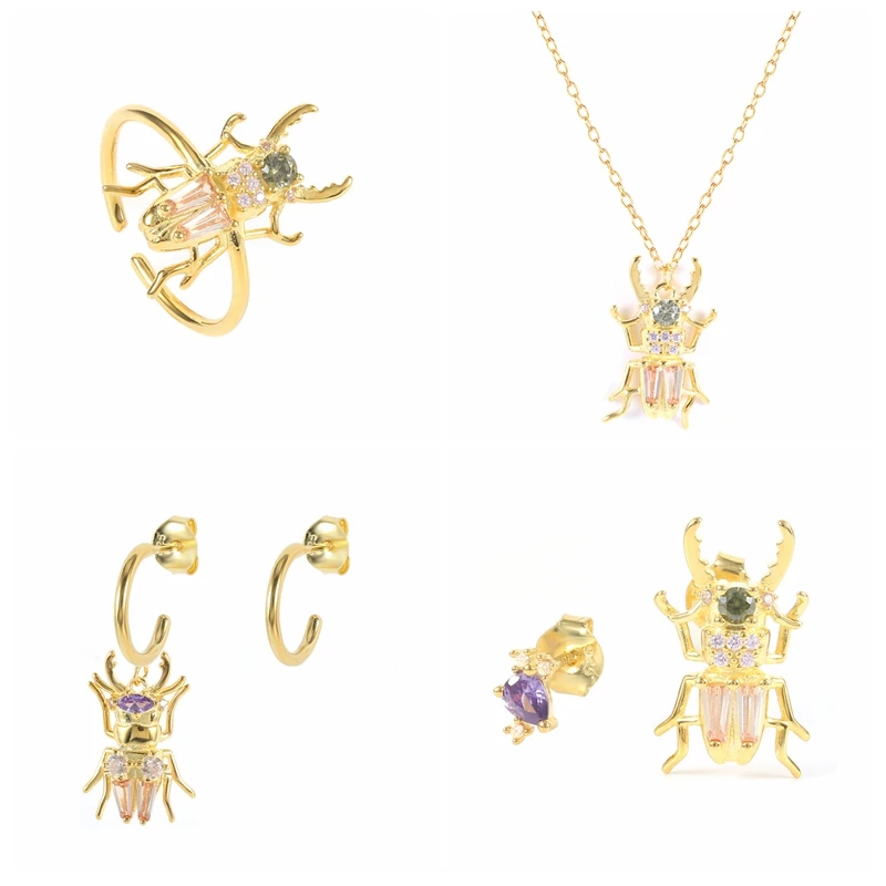 BOAKO 925 пробы, Серебряное золото, CZ жук, животное, циркон, пирсинг, серьги, каплевидные кольца, длинная цепочка, ожерелье, комплект ювелирных украшений