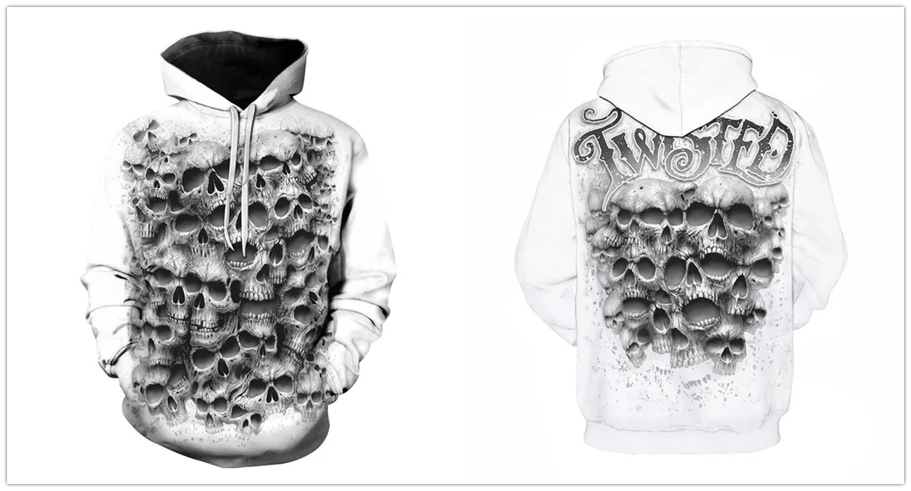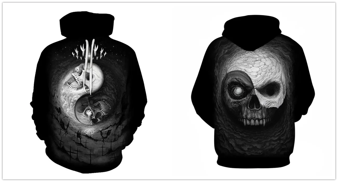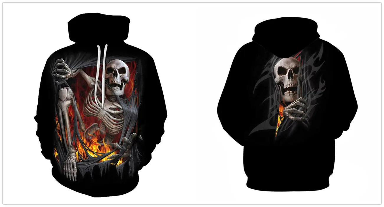 Осень 2021, мужские толстовки с 3D ужасным узором, модная Толстовка с принтом, худи с рисунком черепа, свободный удобный пуловер с капюшоном для мальчиков