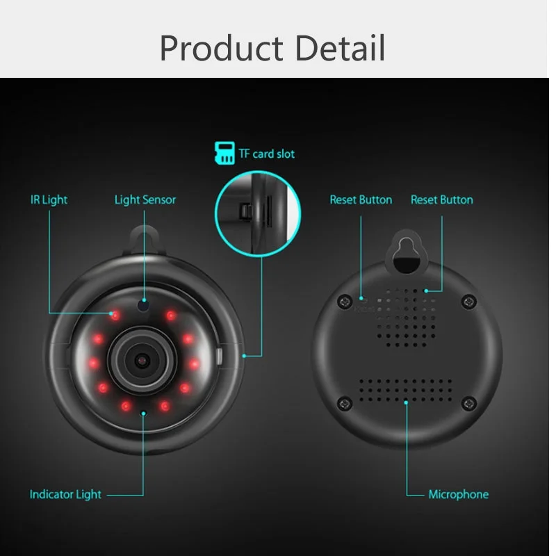 Установка приложения: поиск"V380«В App Store (для устройства IOS) или Play Market (для устройства Android) Особенности: Ip-камера Wi-Fi рыбий глаз 360 градусов без слепых пятен. Камера следит за каждым углом в вашем доме/магазине/офисе, никогда не пропустите ничего, что произошло в области мониторинга. Одного достаточно для вашей домашней безопасности. Получайте информацию о каждом движении в вашем доме с помощью push-уведомления телефона или храните предупреждающие изображения на микро-sd; Датчики обнаружения движения «чувствуют», когда что-то движется, и незамедлительно сообщат вам об этом; идеально подходит для наблюдения. ИК Ночное Видение позволяет четко видеть HD видео наблюдения ночью, вы никогда не пропустите ни минуты, видимость до 16 футов в полной темноте. Встроенный фильтр для защиты от шума камеры обеспечивает сверхчеткий двусторонний доступ к аудио-и видеочату. Быстро Подключайтесь к своей семье, друзьям и вашим домашним животным на мобильных устройствах; Разговаривайте с камерой или слушайте камеру, нет расстояния, чтобы общаться с семьей. Записывайте, храните и просматривайте кадры с помощью карты Micro SD (минимальная поддержка 8G, максимум 128G) и управляйте непосредственно с вашего мобильного устройства; Изображения оповещений будут храниться на sd-карте, И вы можете воспроизводить видео на своем телефоне.