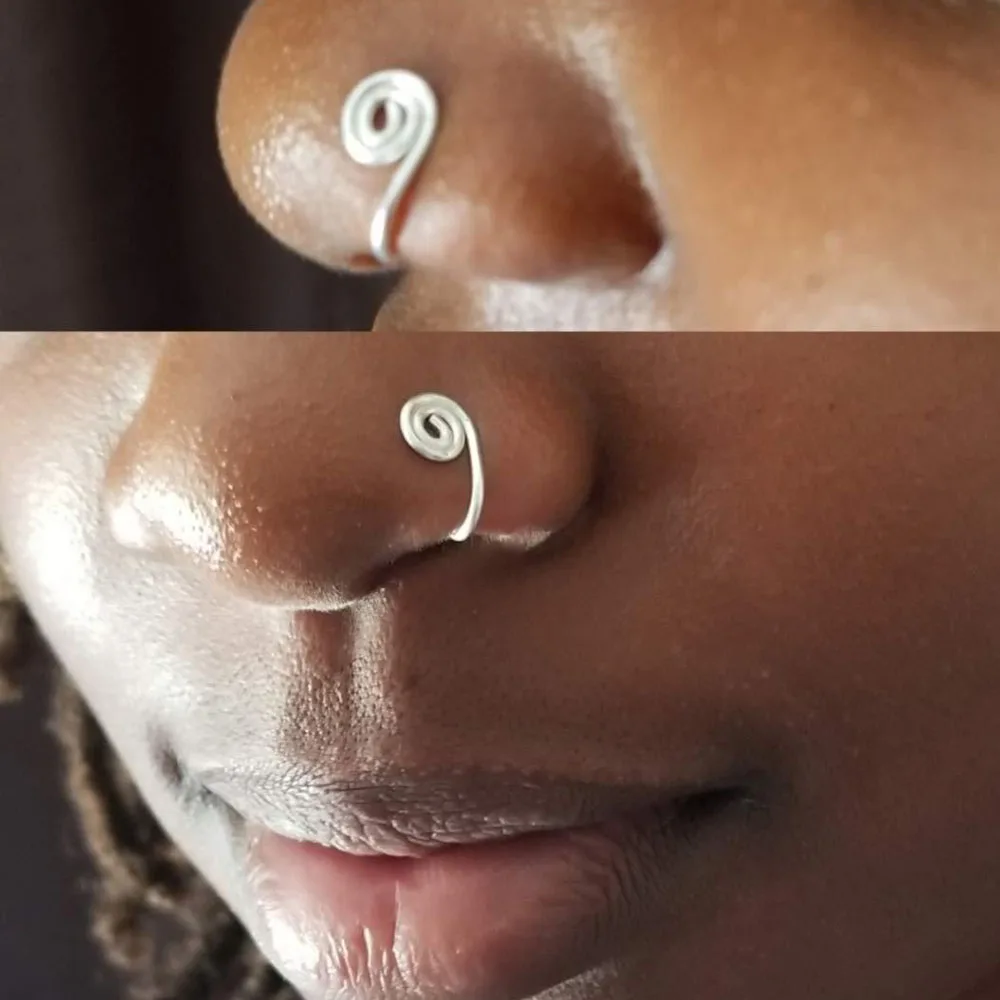 Оригинальный спиральный пирсинг из медной проволоки, кольцо для нос...