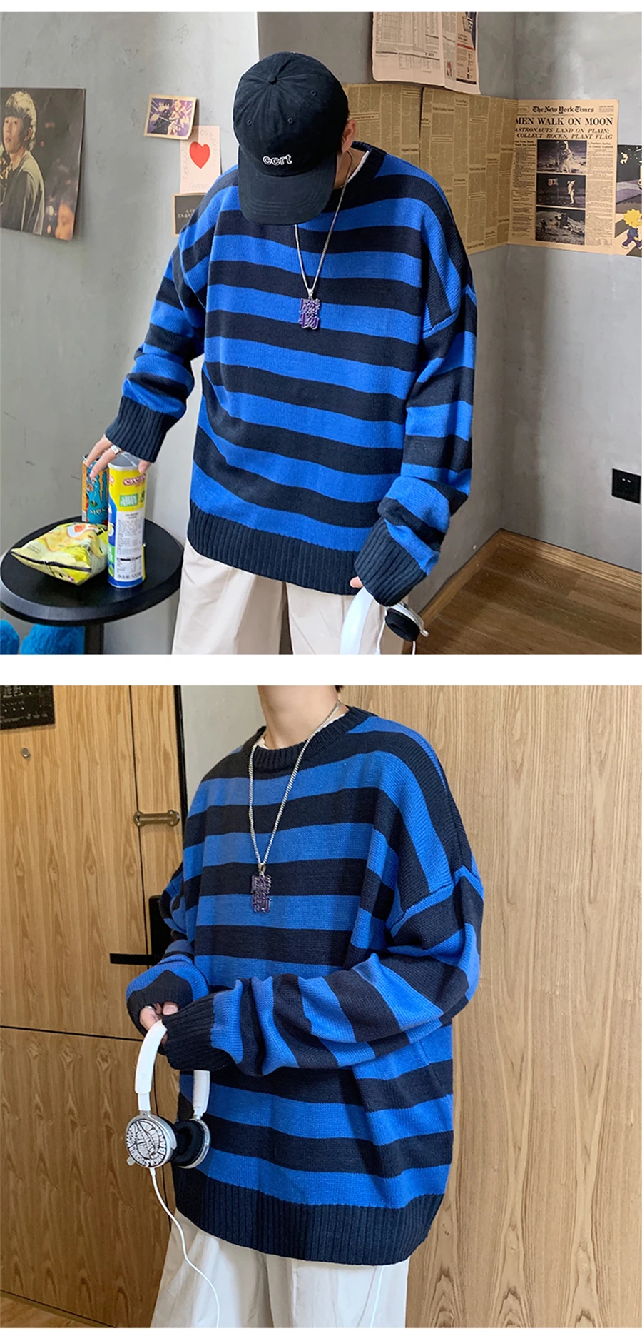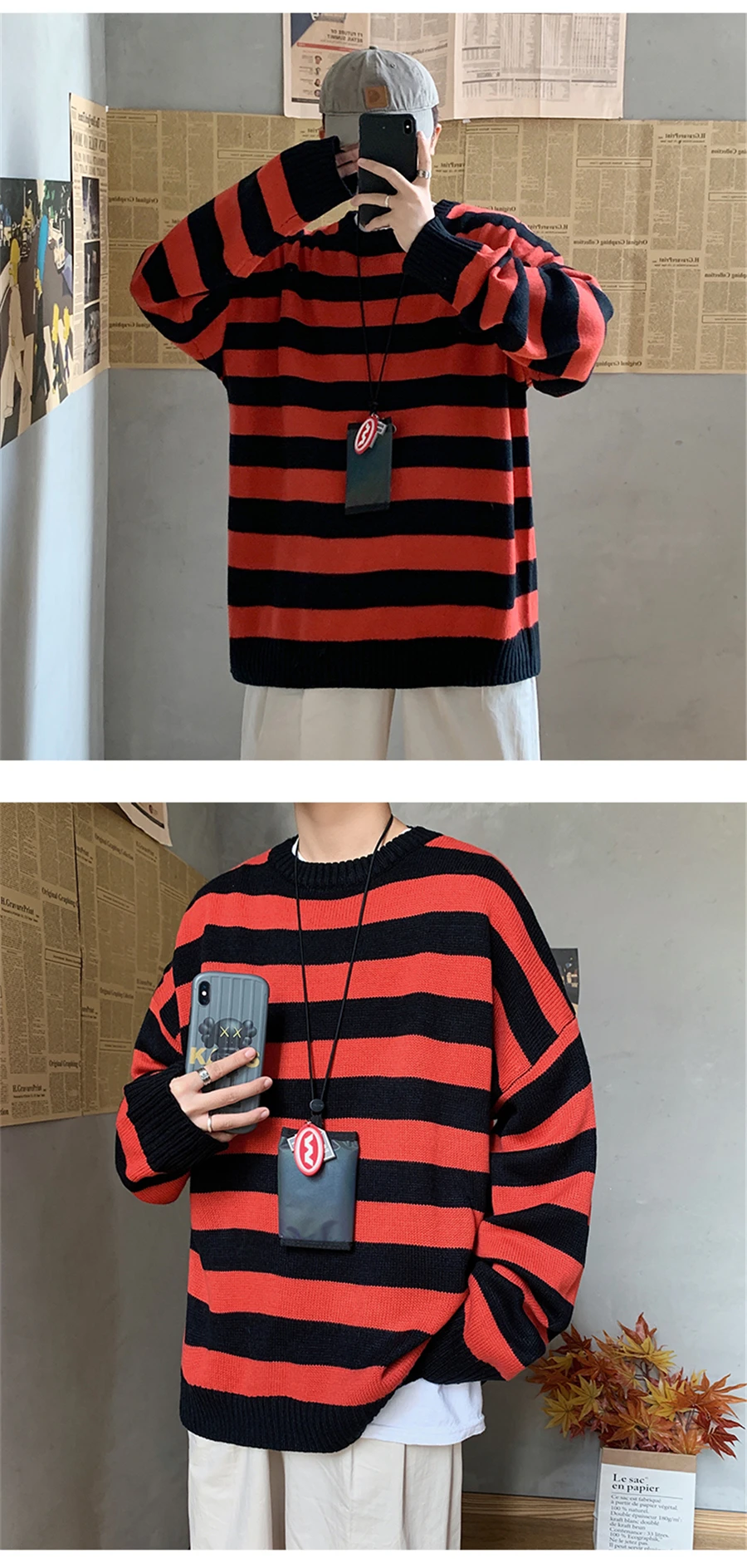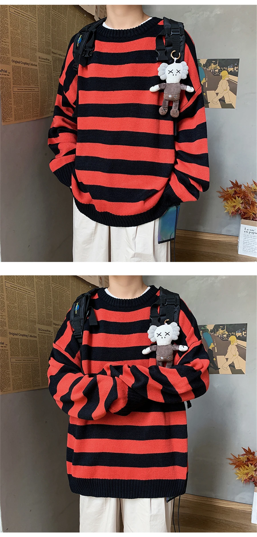 Осенний мужской модный свитер FOJAGANTO, корейский полосатый вязаный пуловер с круглым вырезом, уличный тренд в стиле хип-хоп, Свободный Повседневный мужской свитер