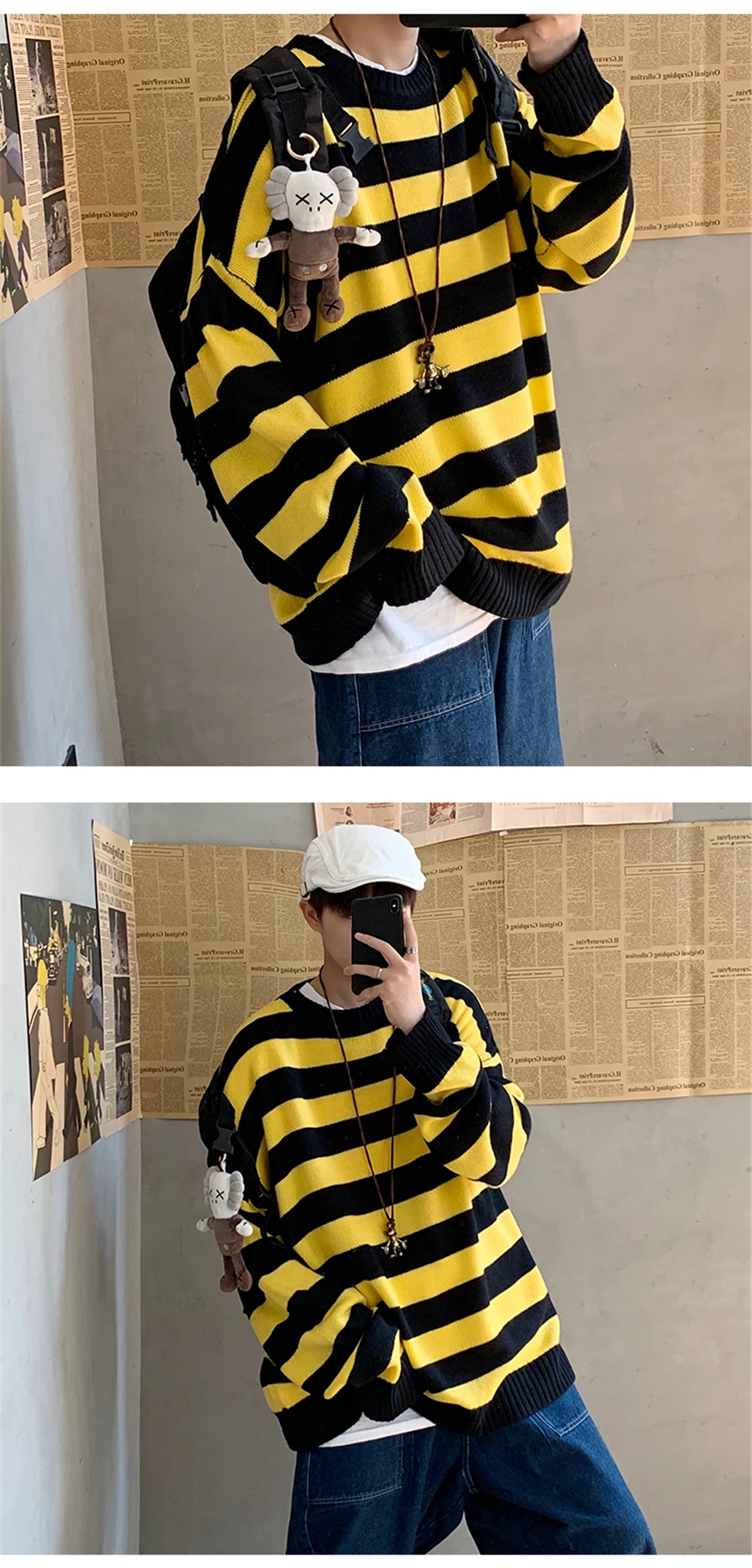 Женский полосатый свитер в стиле Харадзюку, черные и желтые вязаные...