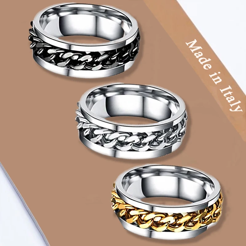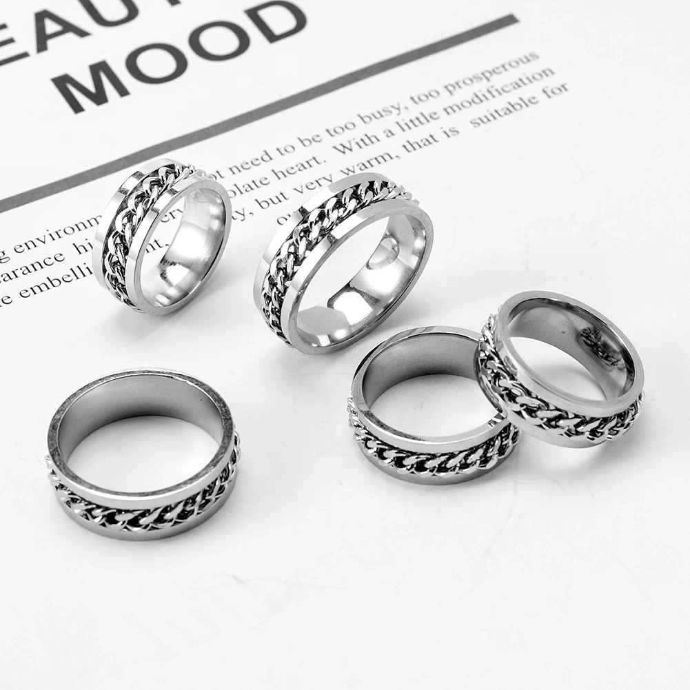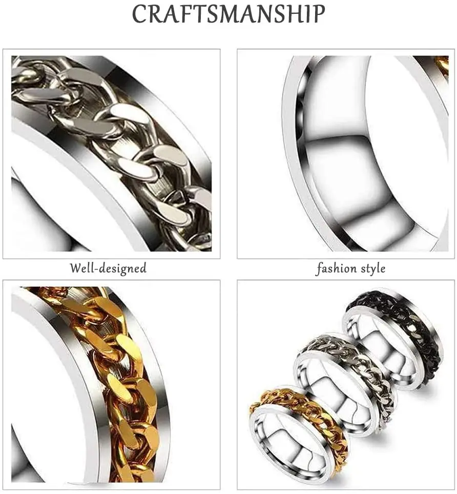 Кольцо-Спиннер для мужчин и женщин, вращающаяся цепочка из нержавею...