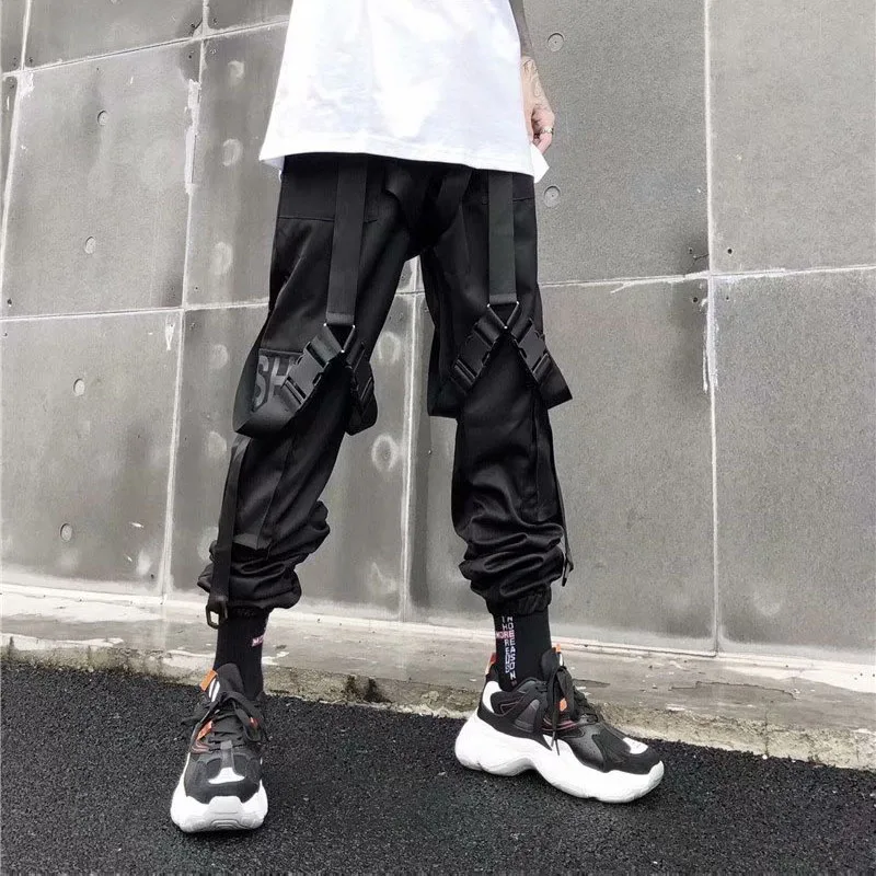 Джоггеры 2021, брюки-карго для мужчин, повседневные мужские Брюки с карманами в стиле хип-хоп, тренировочные штаны, уличная одежда, штаны Techwear с лентами