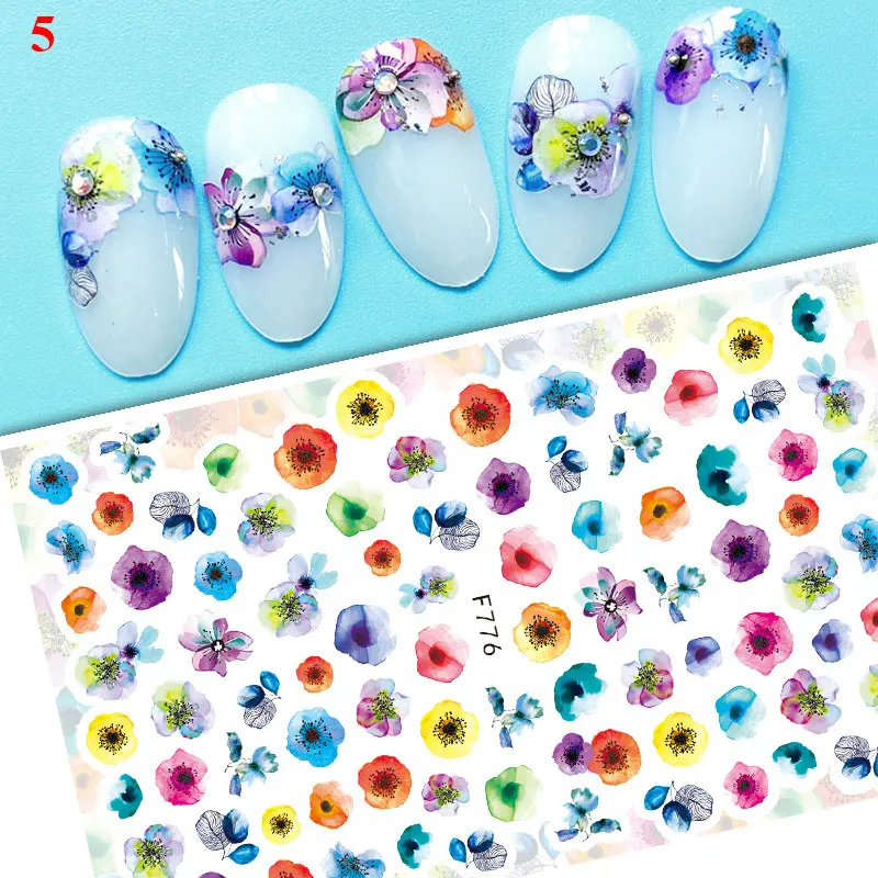 Переводные наклейки для маникюра, цветные наклейки для ногтей, цветочный стикер для ногтей