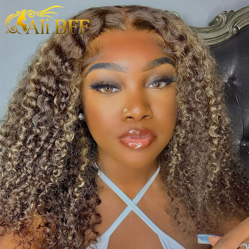 Парик с застежкой на сетке 4x4, парик из вьющихся человеческих волос, 427 выделение, Омбре, коричневые парики на сетке спереди, для женщин, 13X4 парики из человеческих волос спереди на сетке