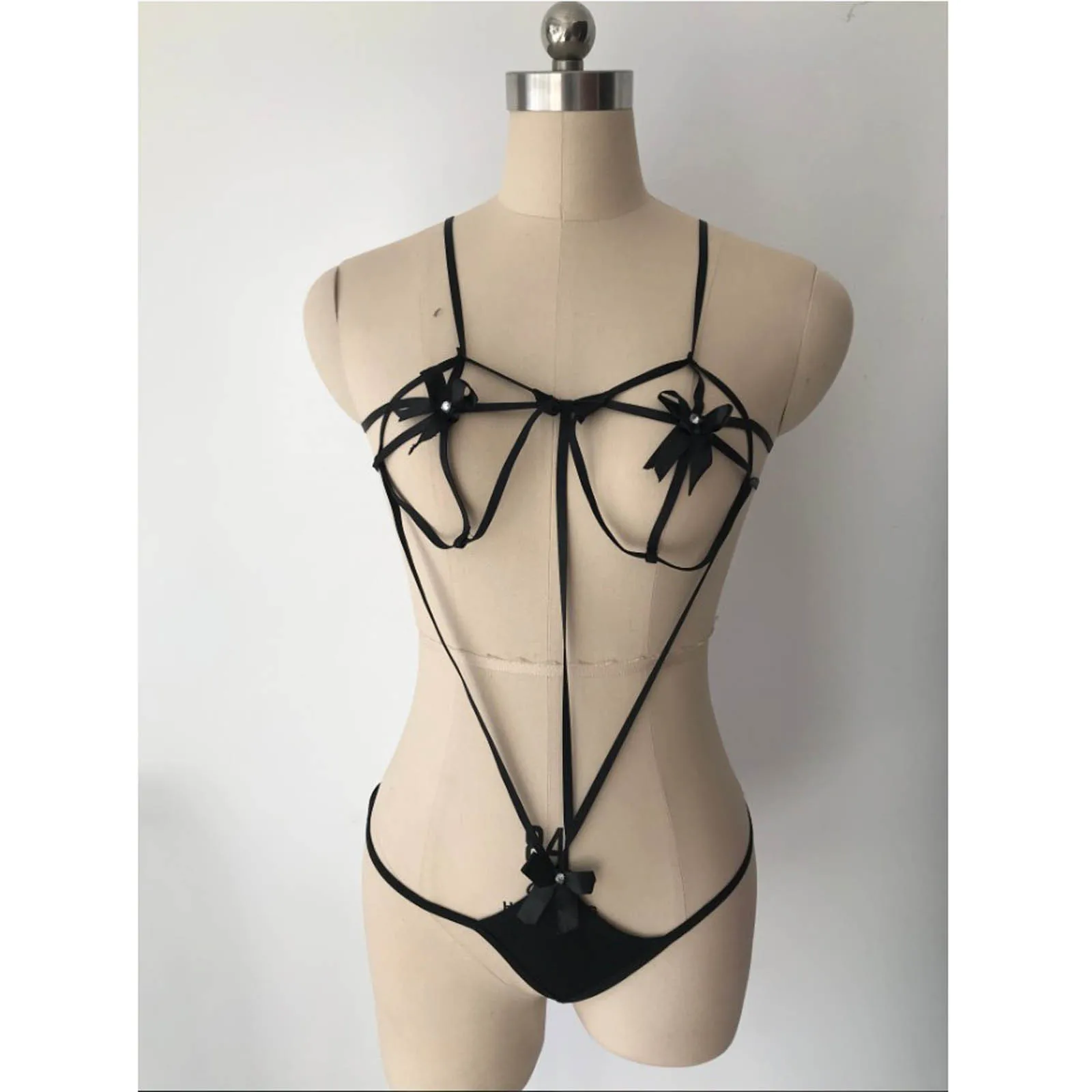 Бандажное боди с бантом, эротическое боди с открытой промежностью, ...