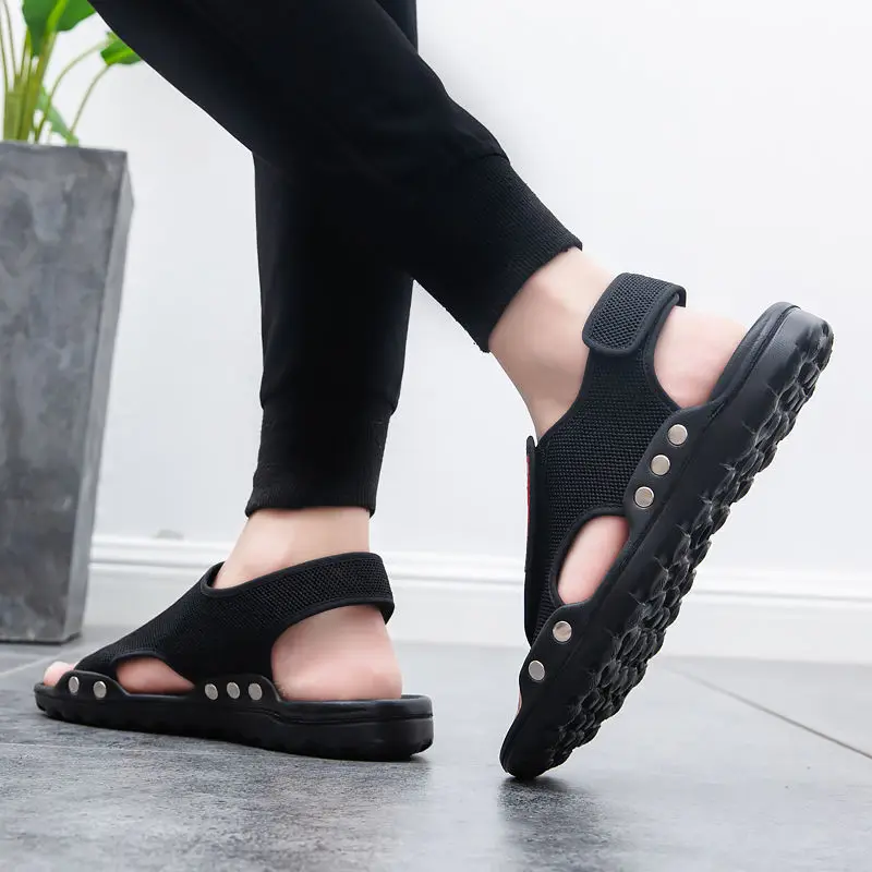 Мужские сандалии, сетчатые дышащие пляжные туфли, плоская подошва, ...