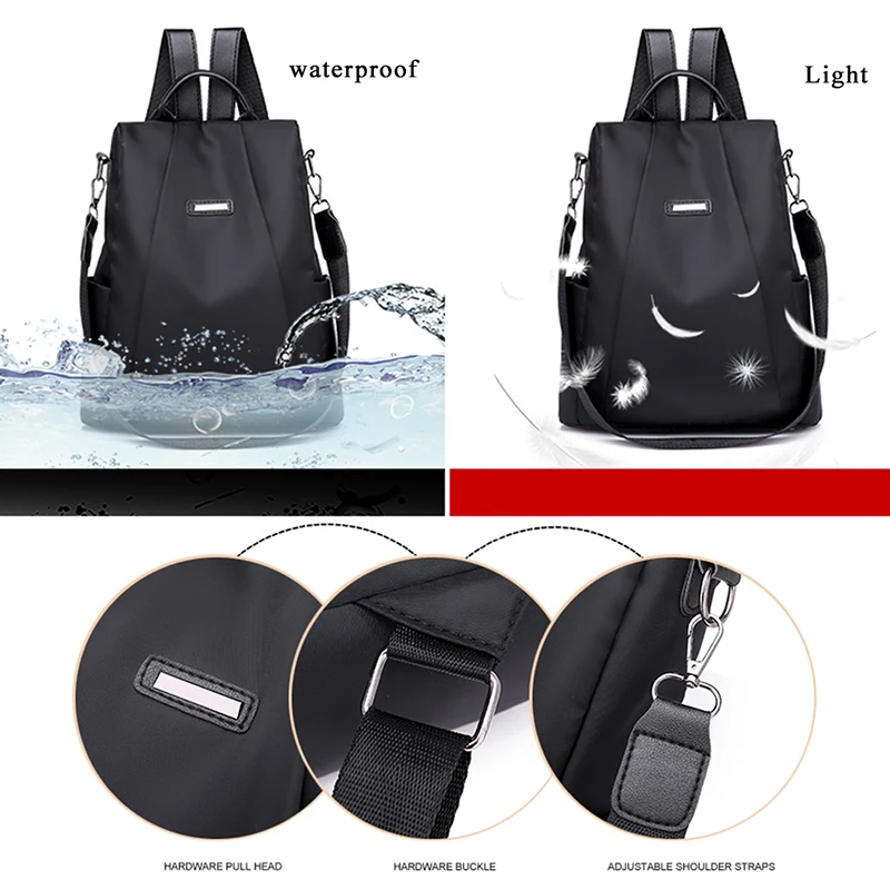 Женский портативный дорожный рюкзак с защитой от кражи, повседневный нейлоновый водонепроницаемый вместительный школьный ранец для девушек, цвет черный