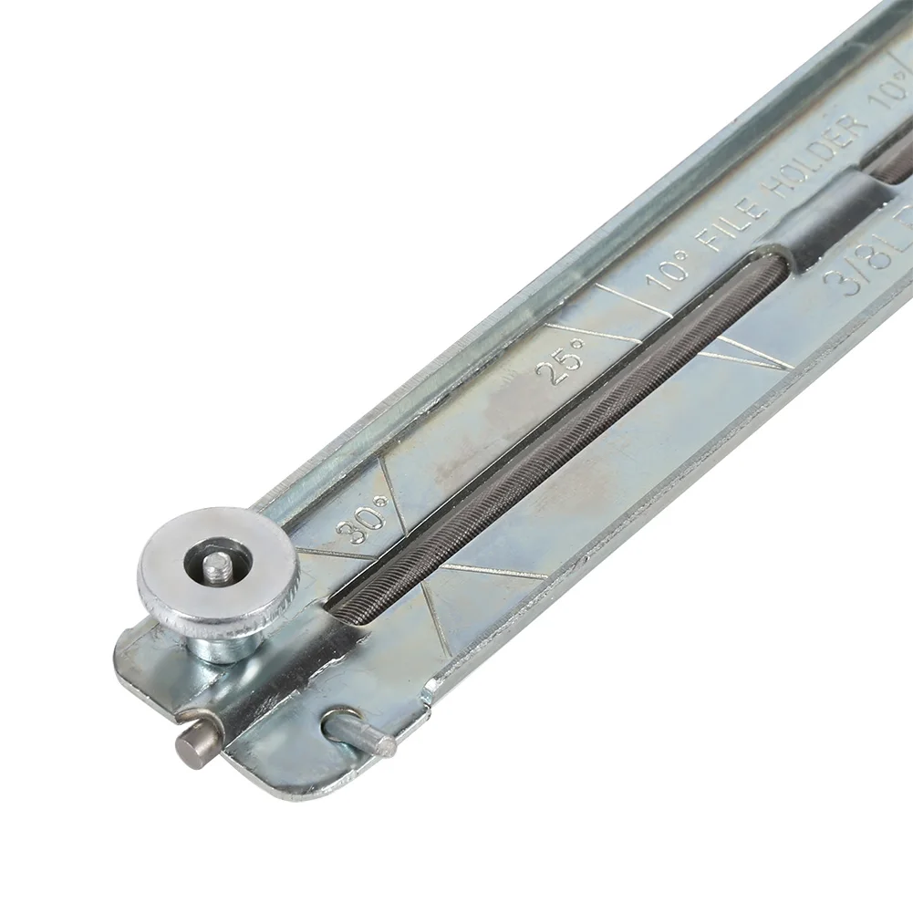 Этот товар изготовлен из высококачественного стального материала, не ржавеет, прочный и прочный в использовании. Поставляется с пилкой и деревянной ручкой, что делает заточку легкой работой. Пластина имеет Угловые линии, четко маркированные для обеспечения точности. Также доступны различные размеры для большинства цепей.