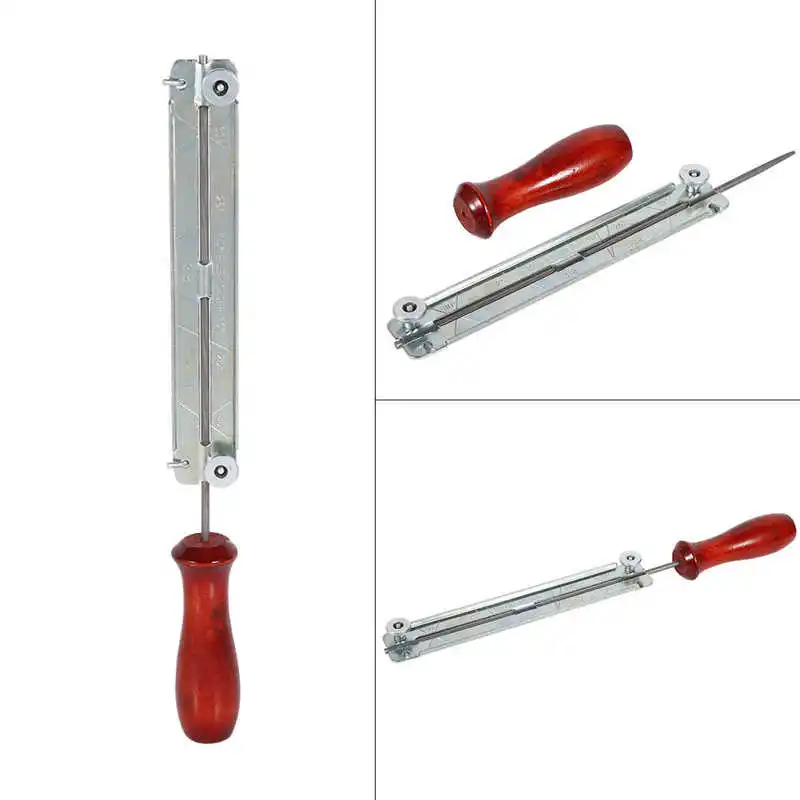 Изготовлен из высококачественного стального материала, не ржавеет, прочный и прочный в использовании. С деревянной ручкой, удобно брать. Прикрепленная направляющая пластина удерживает файл на нужной глубине. Быстрая и точная заточка. Доступны различные размеры для большинства цепей.