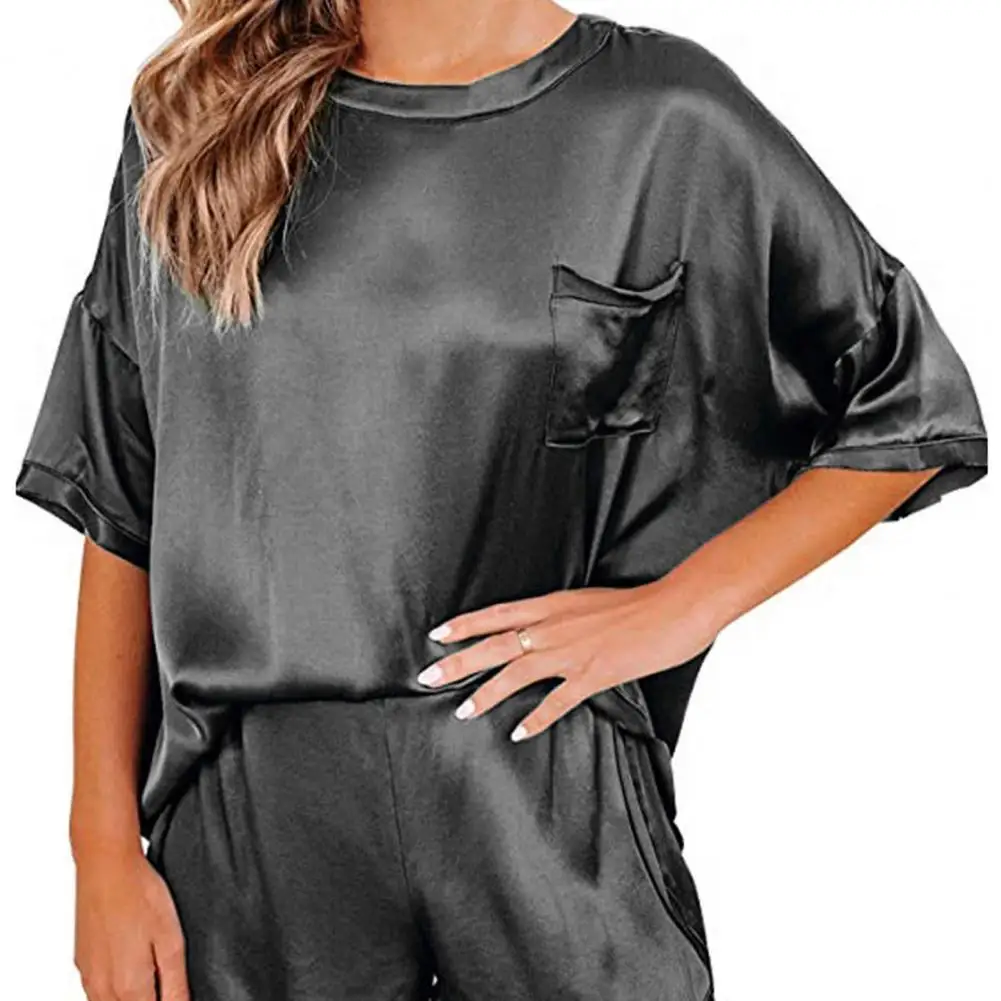Женская атласная однотонная Пижама с коротким рукавом и шортами