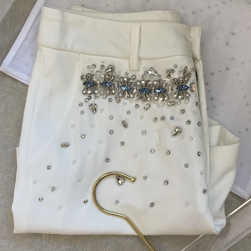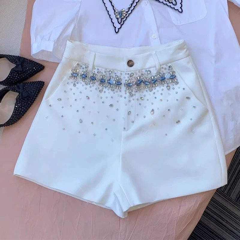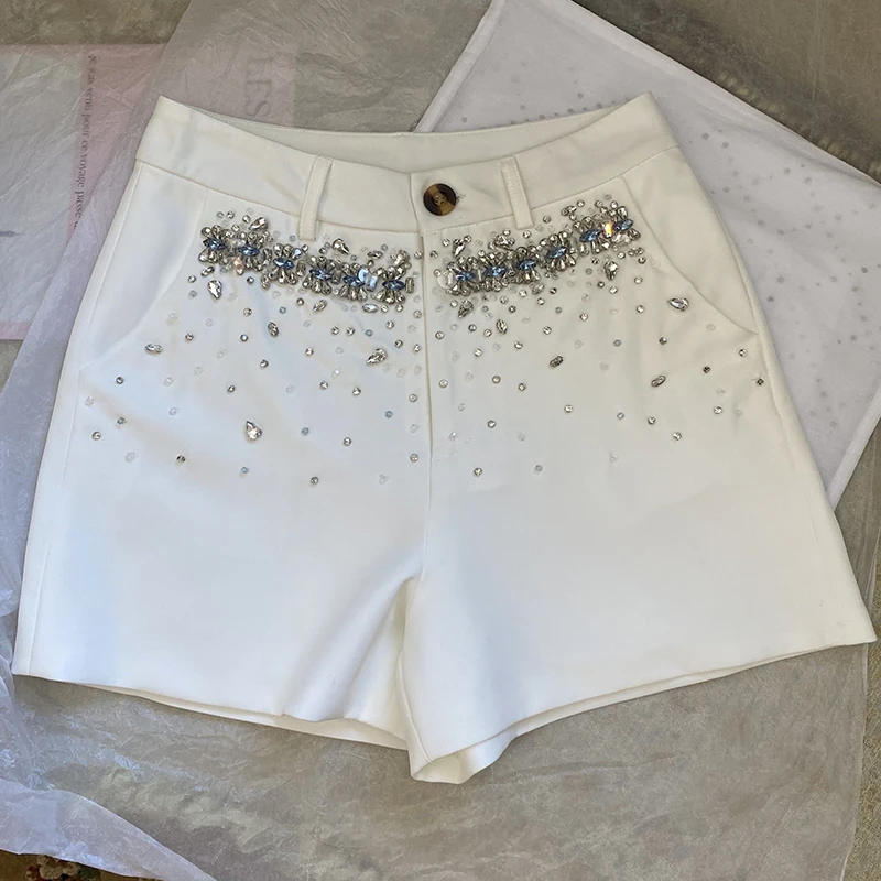 Женский Повседневный костюм с карманами, белые шорты с бриллиантами, лето 2021