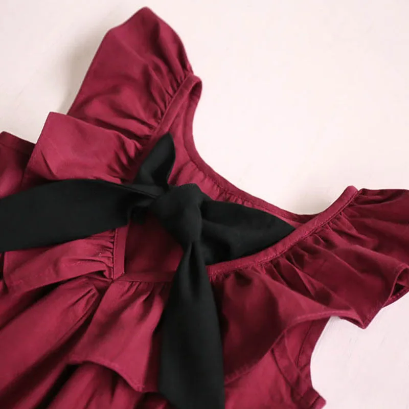 Платье для девочек Хлопковое однотонное платье с оборками ажурное п...
