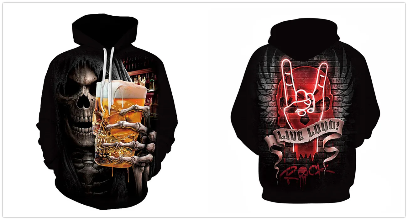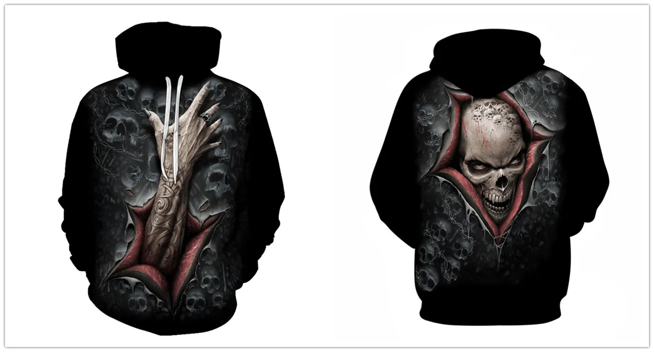 Новинка, мужские толстовки с 3D рисунком черепа, толстовка с ужасны...