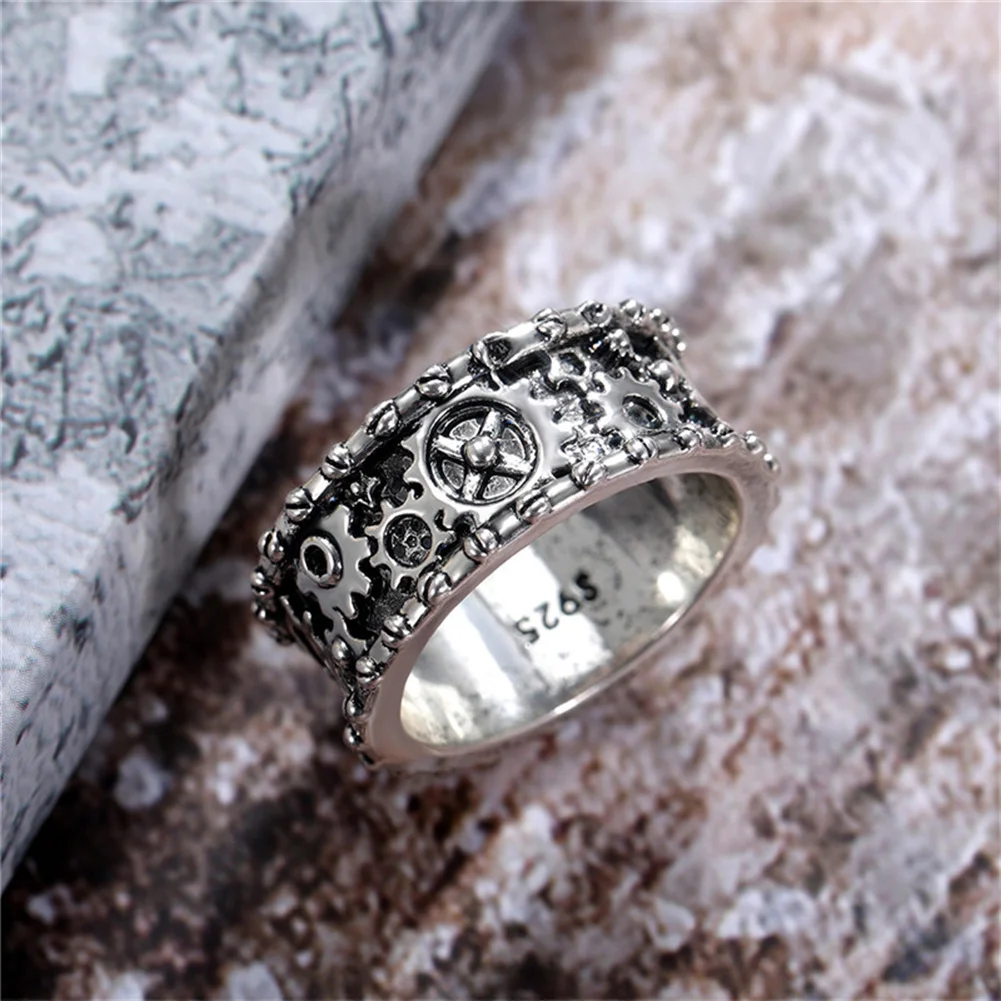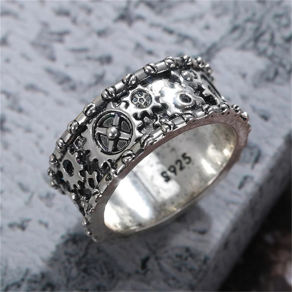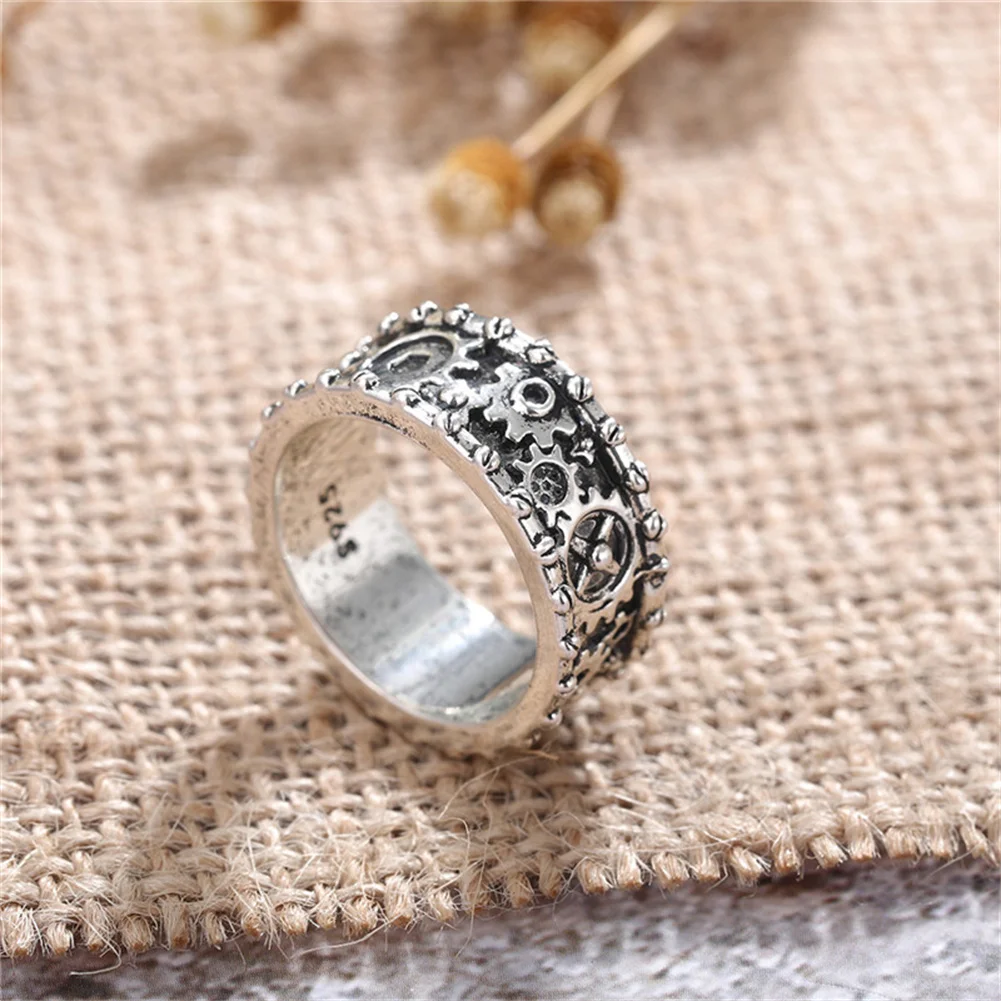 Для мужчин и женщин старинные хип-хоп панк винтажные Свадебные ювелирные изделия Серебряная Шестерня резные кольца на палец оптовая продажа