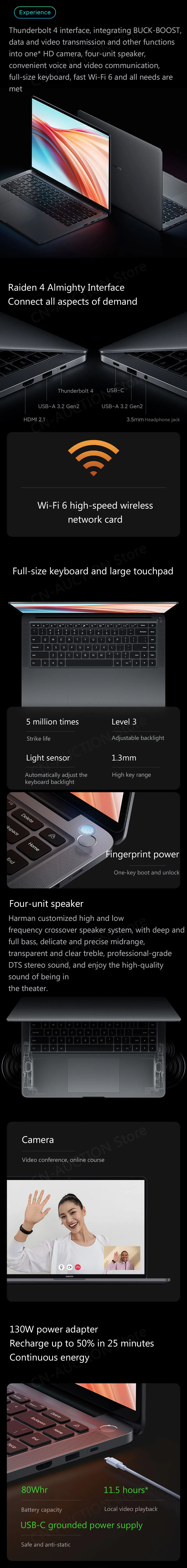 80Wh (номинальное число) емкость батареи, 130W USB-C адаптер питания, 11,5 часов локального воспроизведения видео *, 50% заряда в 25 минут *