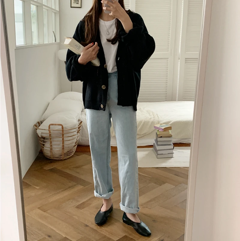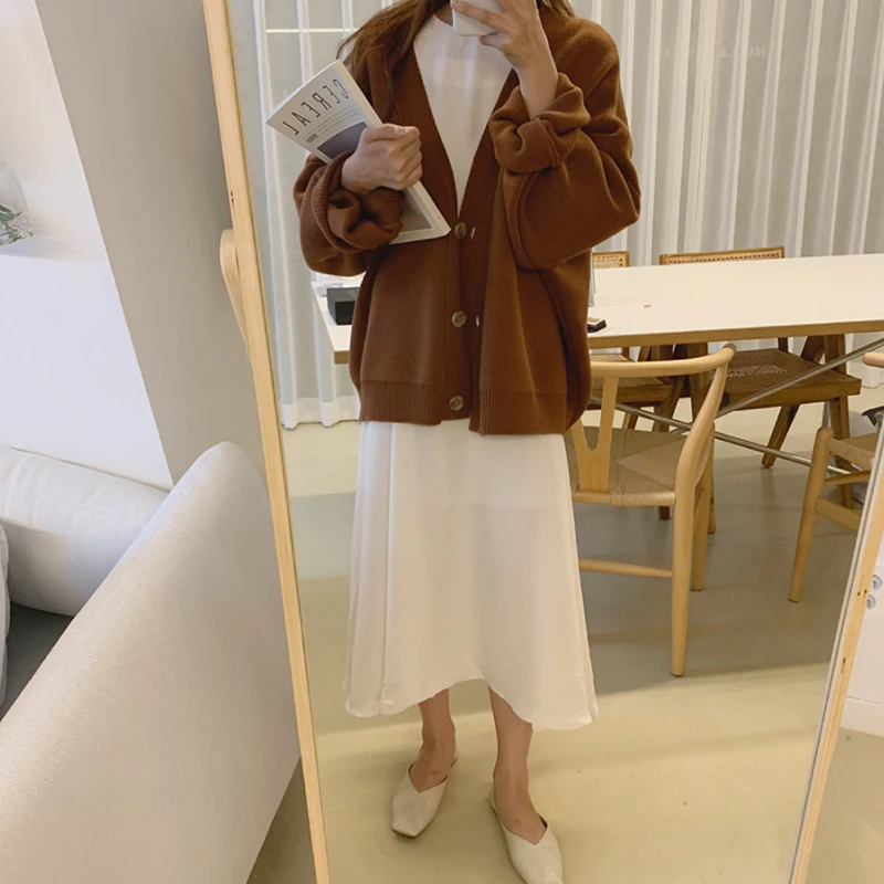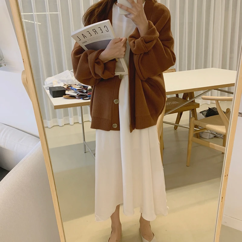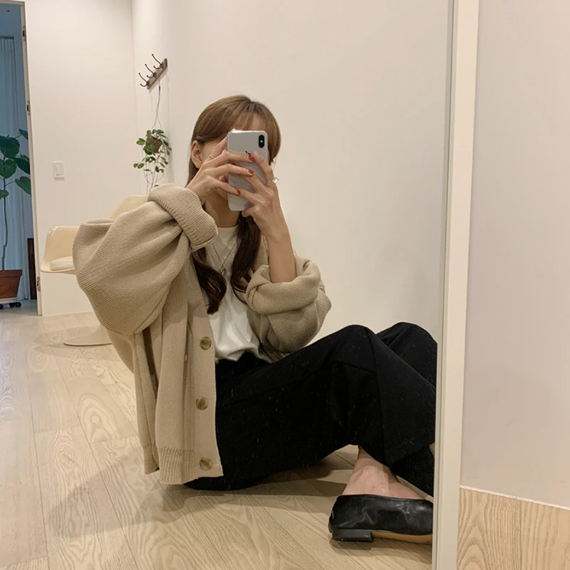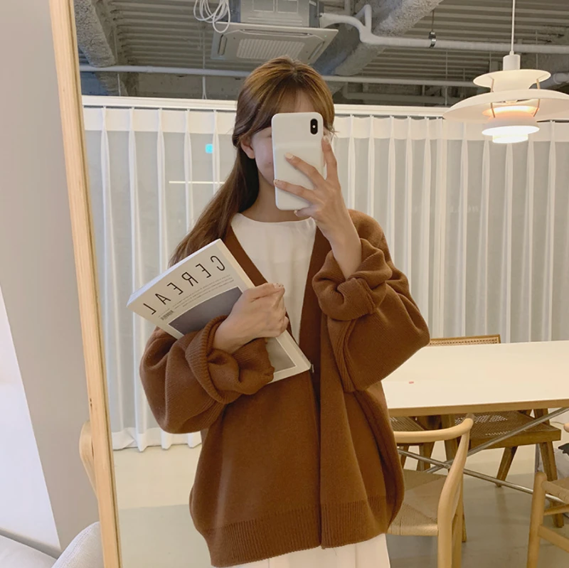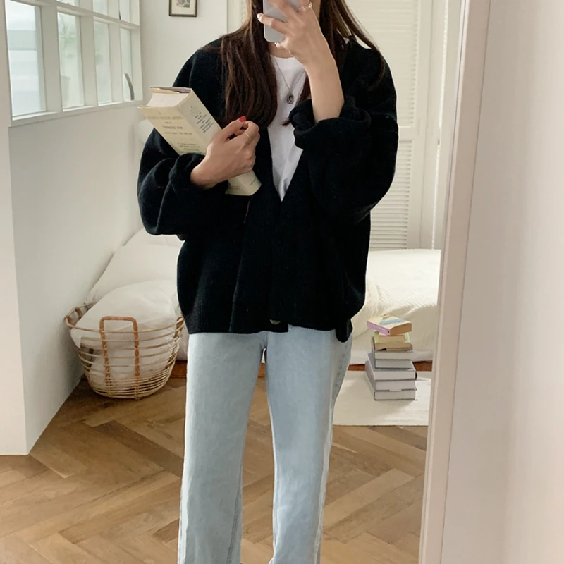 Однотонные вязаные кардиганы в стиле оверсайз, женский свитер в сти...