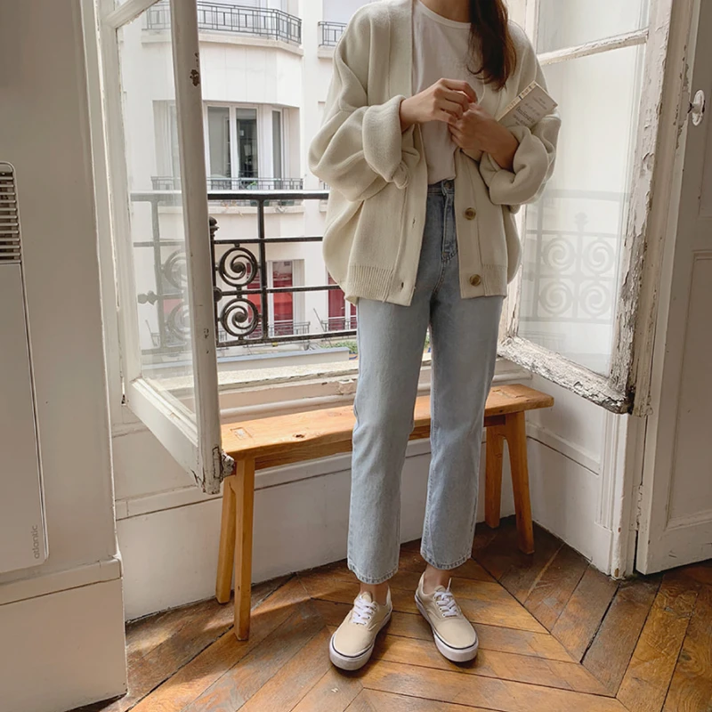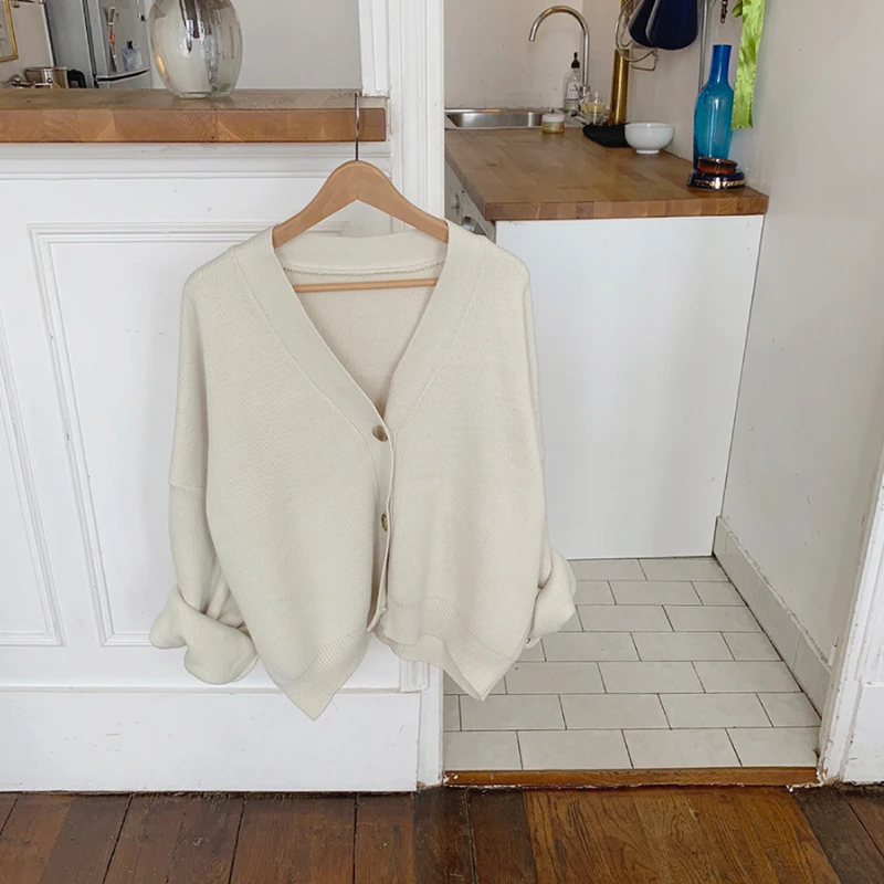 Плотный свитер, женский кардиган оверсайз с V-образным вырезом, Осе...
