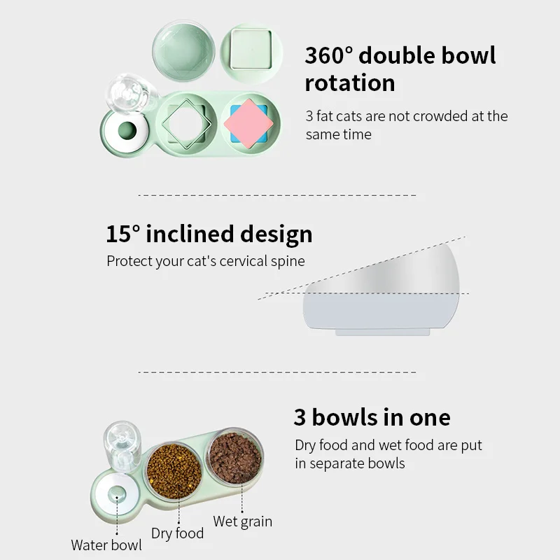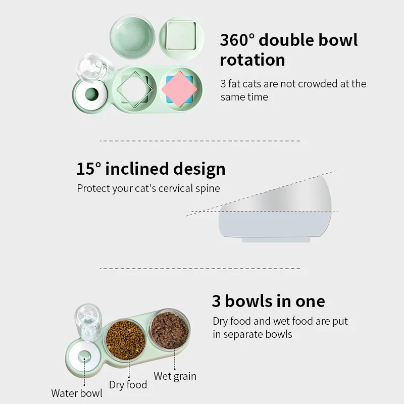 3-в-1 миска для еды для домашних животных автоматическая кормушка д...