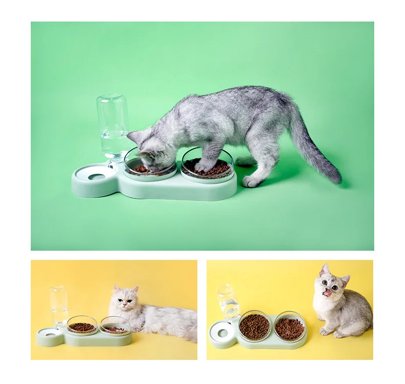Двойная миска для кошек, миска для еды и собак, автоматический диспенсер для воды, контейнер для кормления питьевой посуды, миска для домашних животных