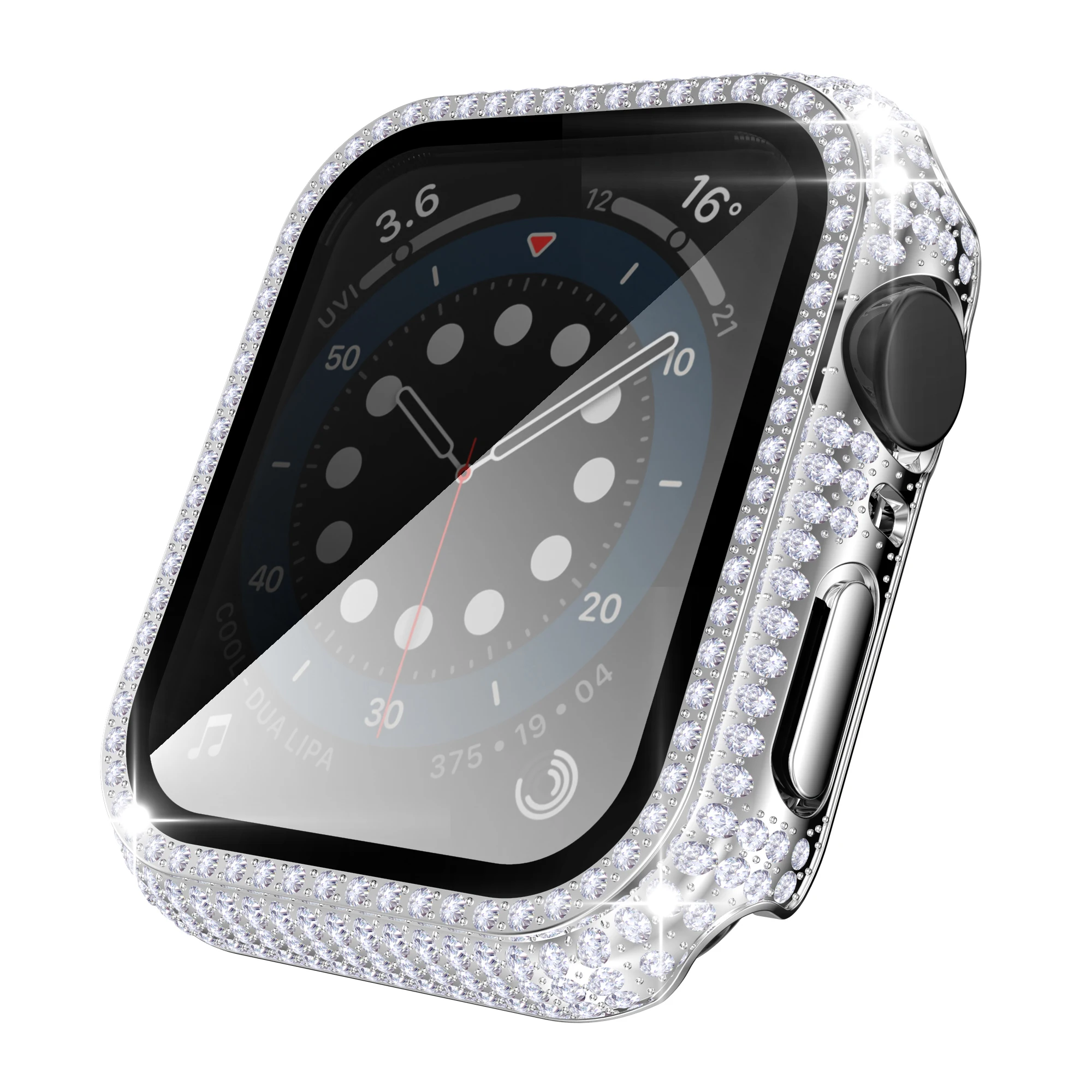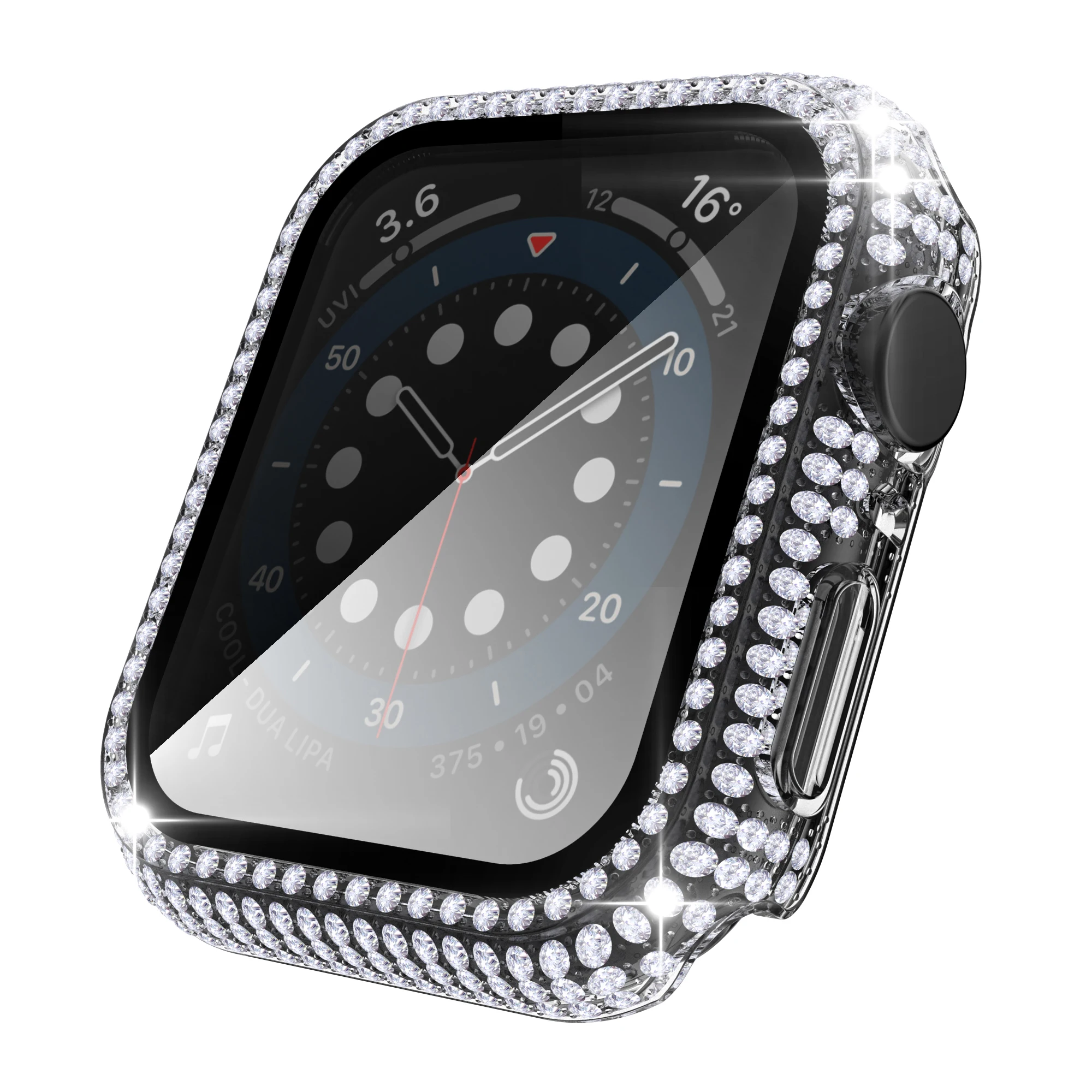Закаленное стекло для защиты экрана Apple watch, чехол 44 мм 40 мм серии SE 6 5 4, Алмазный чехол для iWatch 3 2 1 38 мм 42 мм