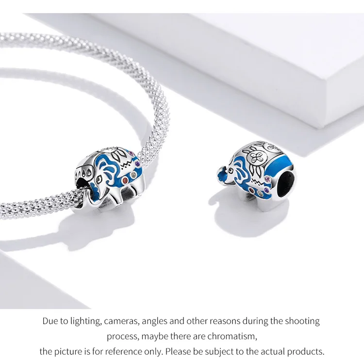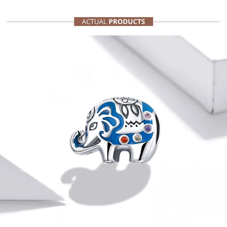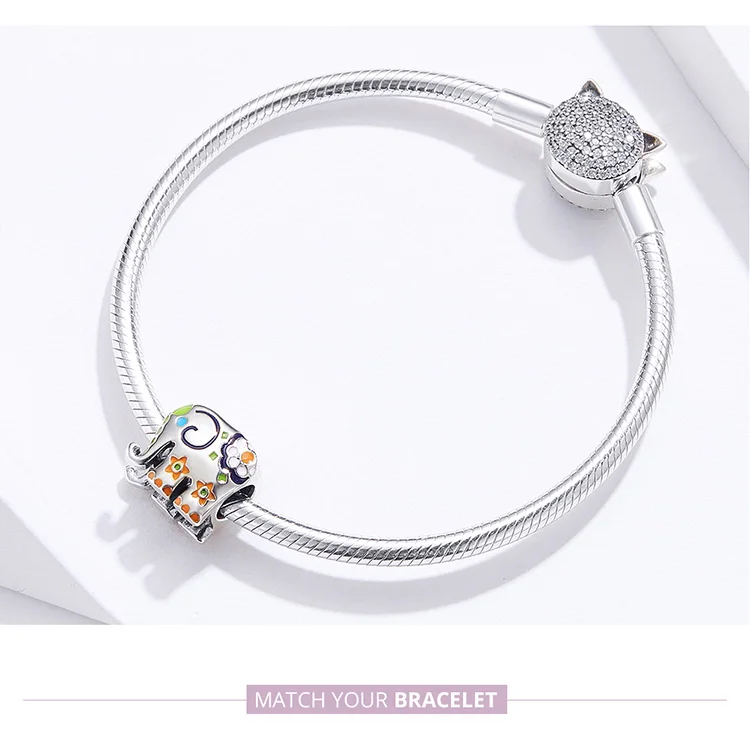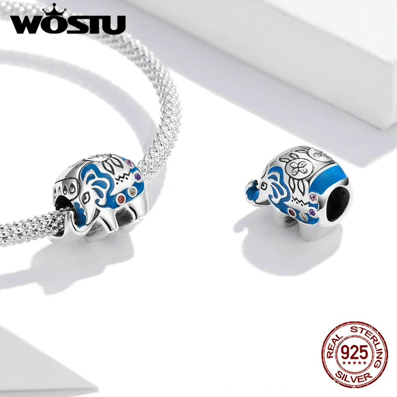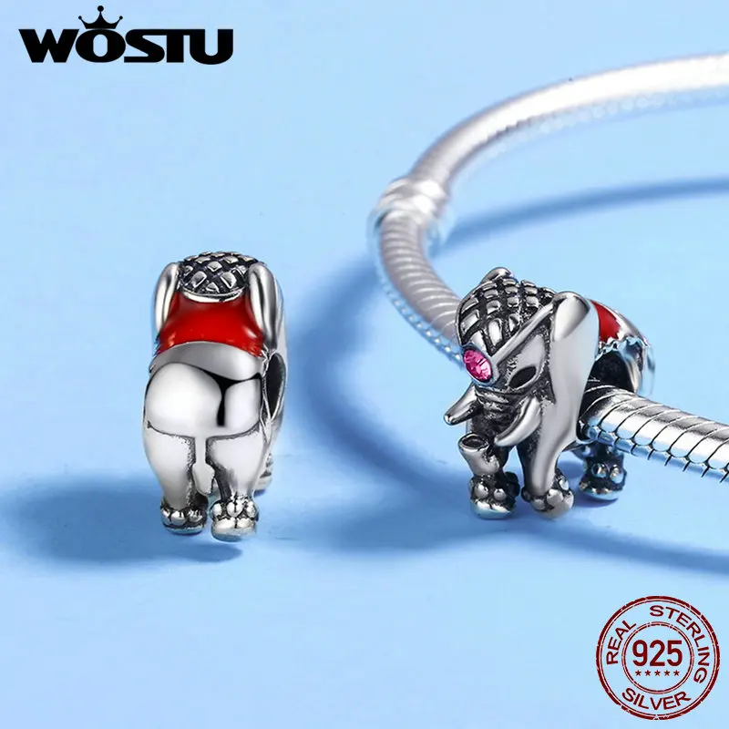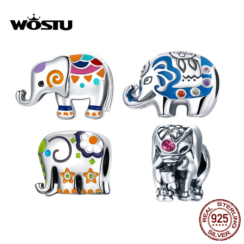 WOSTU Маленький слон красочные Шарм 925 Серебро милые животные кулон из бисера Подходит оригинальный браслет ожерелье DIY ювелирные изделия