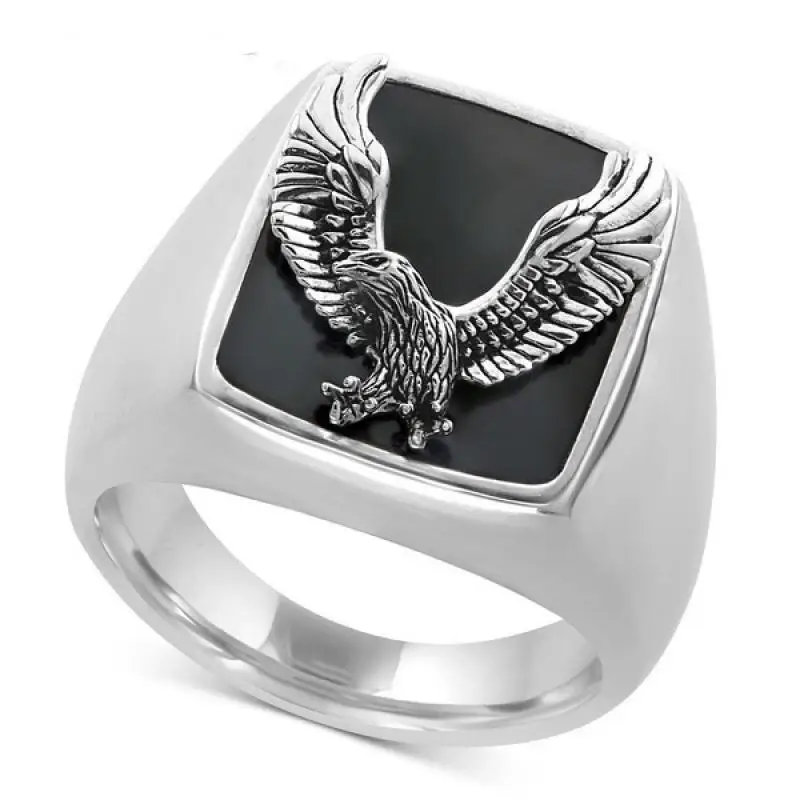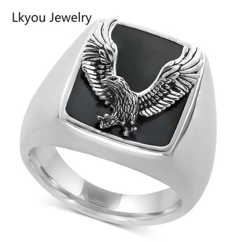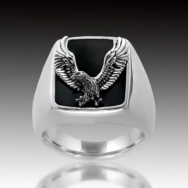 Мужское кольцо с резьбой в виде летающего орла, в европейском и американском стиле, с черным глянцевым цирконом, модное украшение в стиле хип-хоп, локомотив