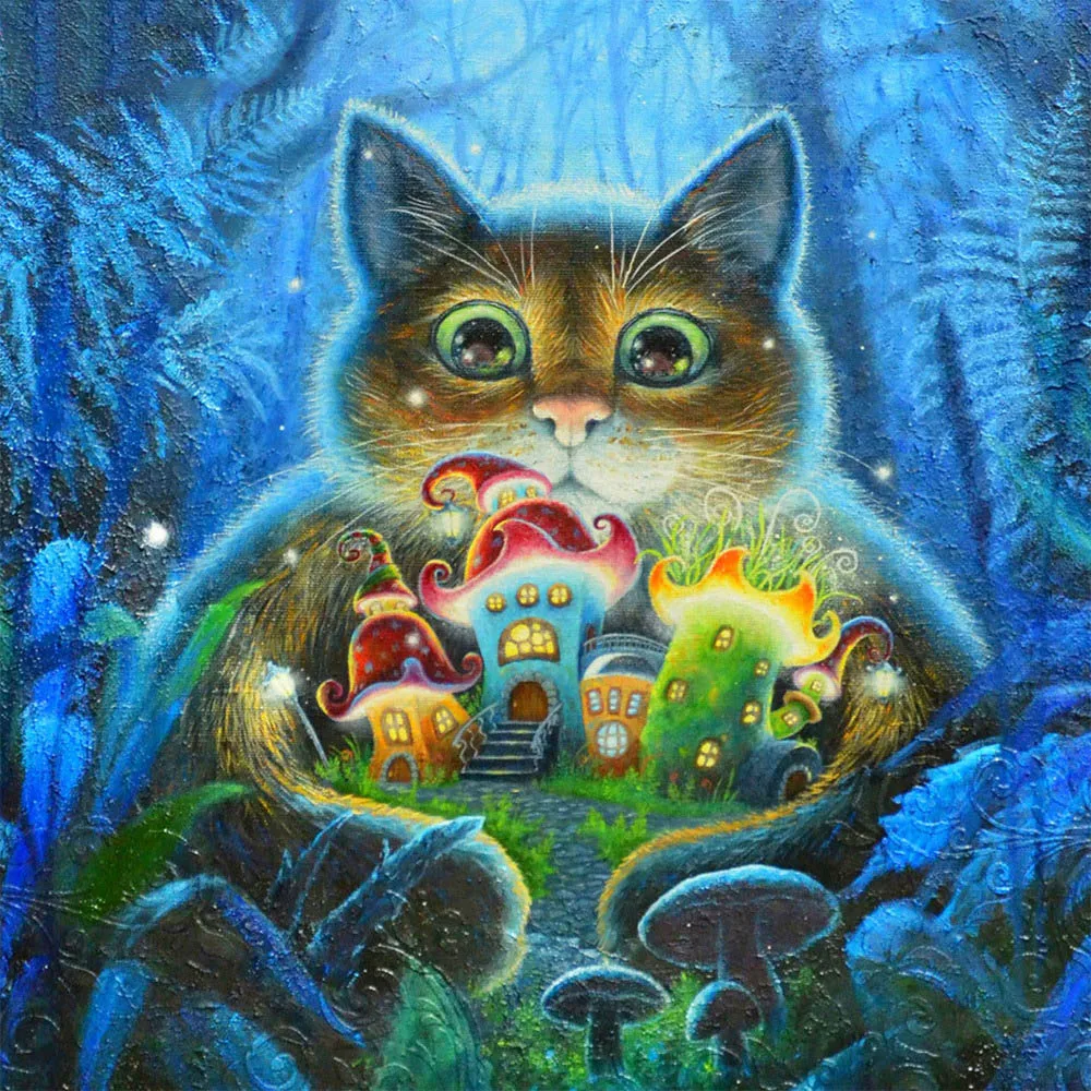 Алмазная живопись 5D "сделай сам" с изображением кошки, с удовольст...