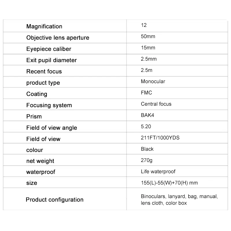 Телескоп 12x50 зум оптический объектив высокой четкости Монокуляр н...
