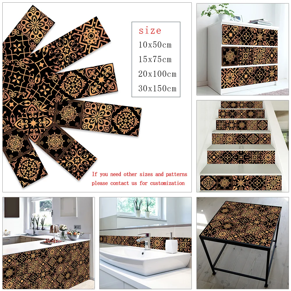 Черная позолоченная Наклейка на стену для кухни, лестницы, пол, ванная комната, домашнее украшение, самоклеящаяся ПВХ Наклейка на стену