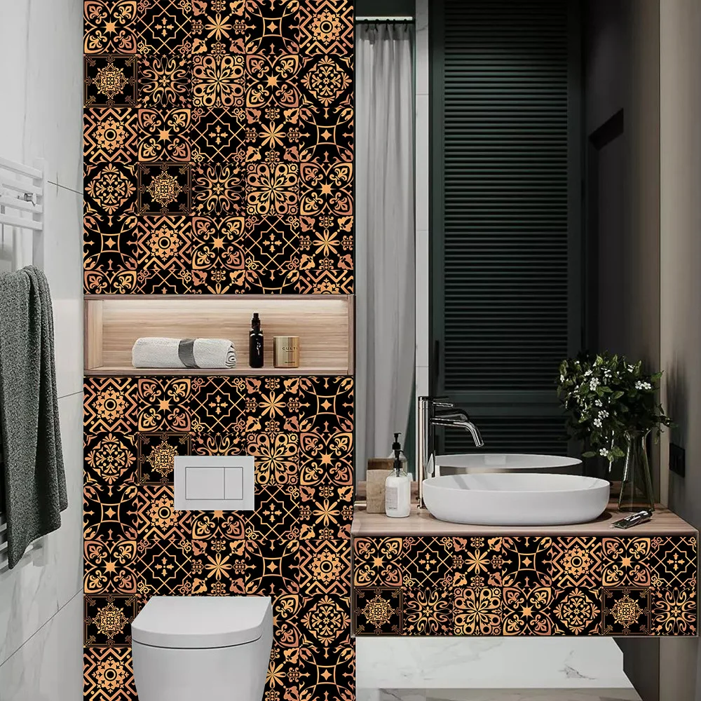 Черная позолоченная имитация наклеек на стену для кухни, лестницы, пола, ванной комнаты, украшение для дома, самоклеящаяся наклейка на стену из ПВХ