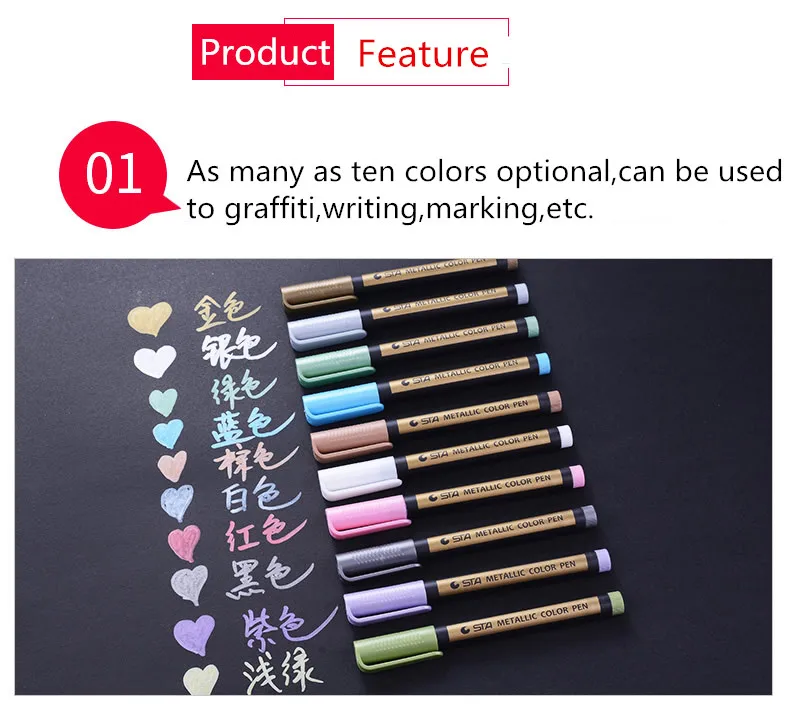 STA10PCS металлический художественный маркер, черная карточка, рисо...