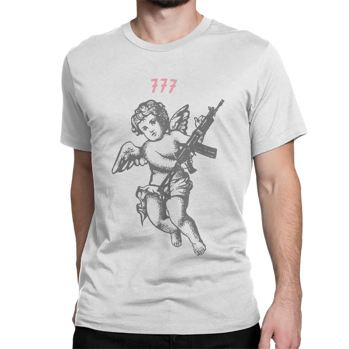 Мужская Винтажная футболка с коротким рукавом, ангел гангстера с AK47, кавайная одежда из чистого хлопка с херувимом, футболки 4XL 5XL