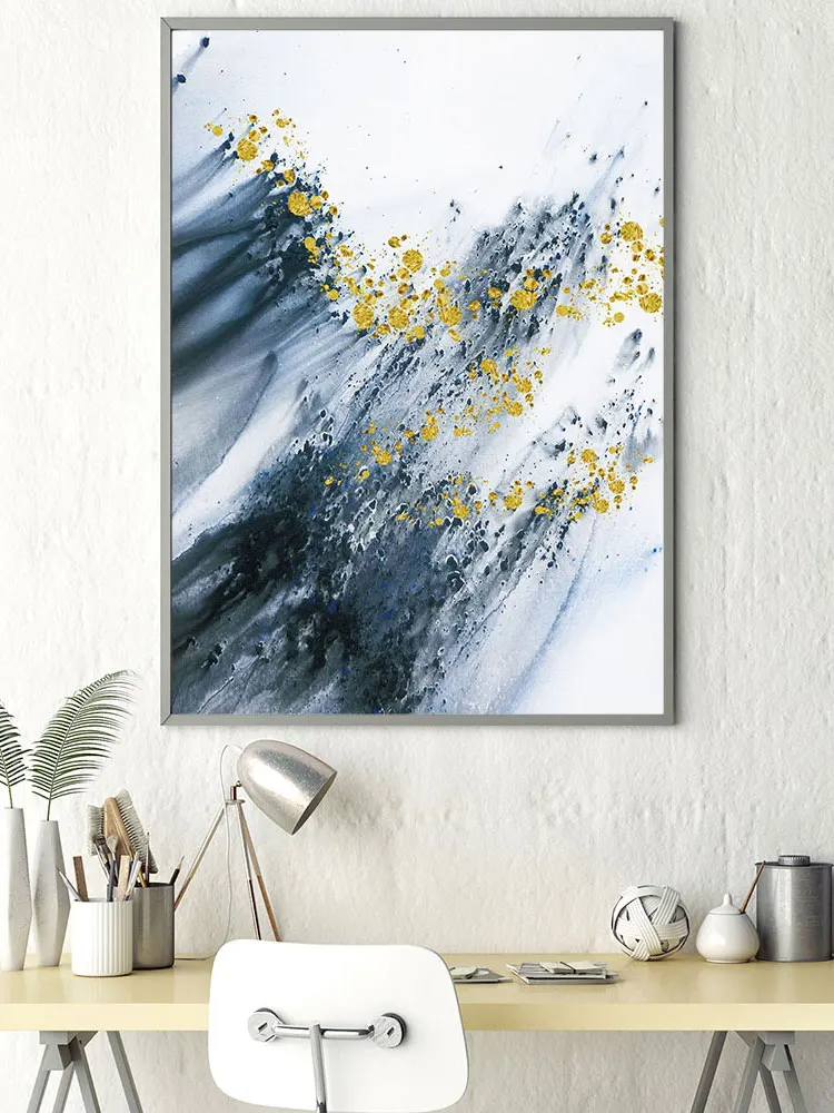 Абстрактный плакат Viewscepe, скандинавский холст, Золотая и синяя современная живопись, минималистичный художественный принт, Настенная картина для гостиной, домашний декор