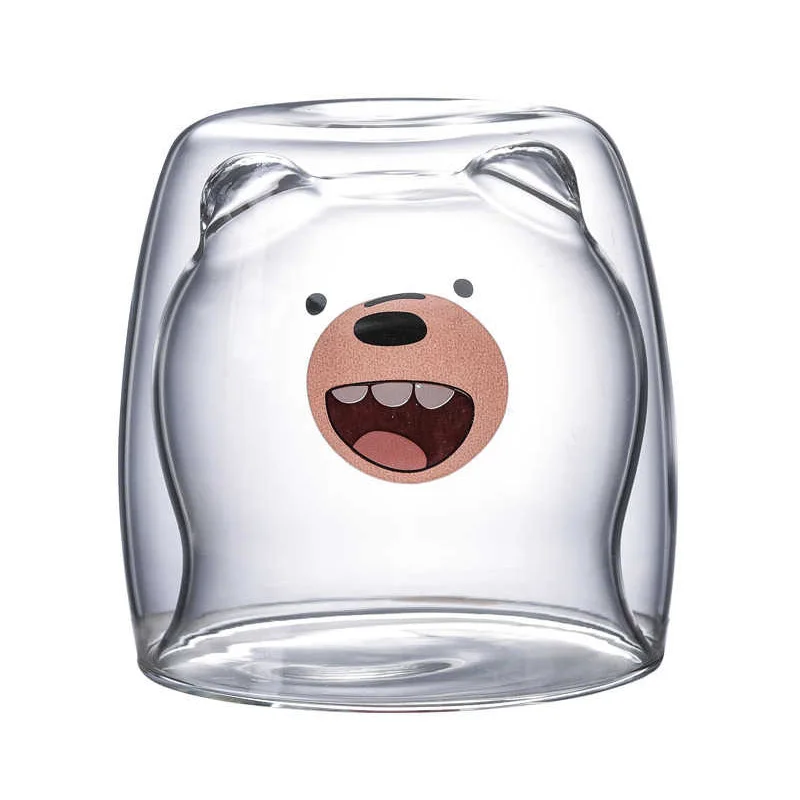 3D 2-уровневый милый медведь, инновационный стакан для пива, стеклянная кружка, термостойкая кофейная кружка с двойными стенками, Рождественская кружка для молока, сока