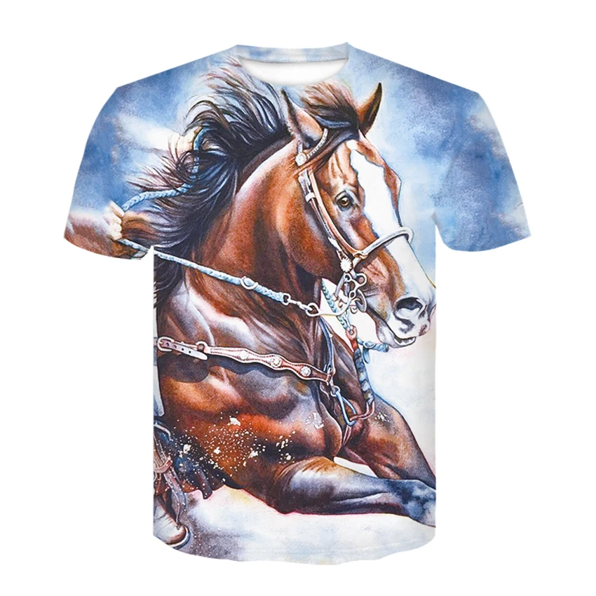 Женская и мужская футболка с коротким рукавом, Повседневная футболка унисекс с 3D-принтом лошади, 2021