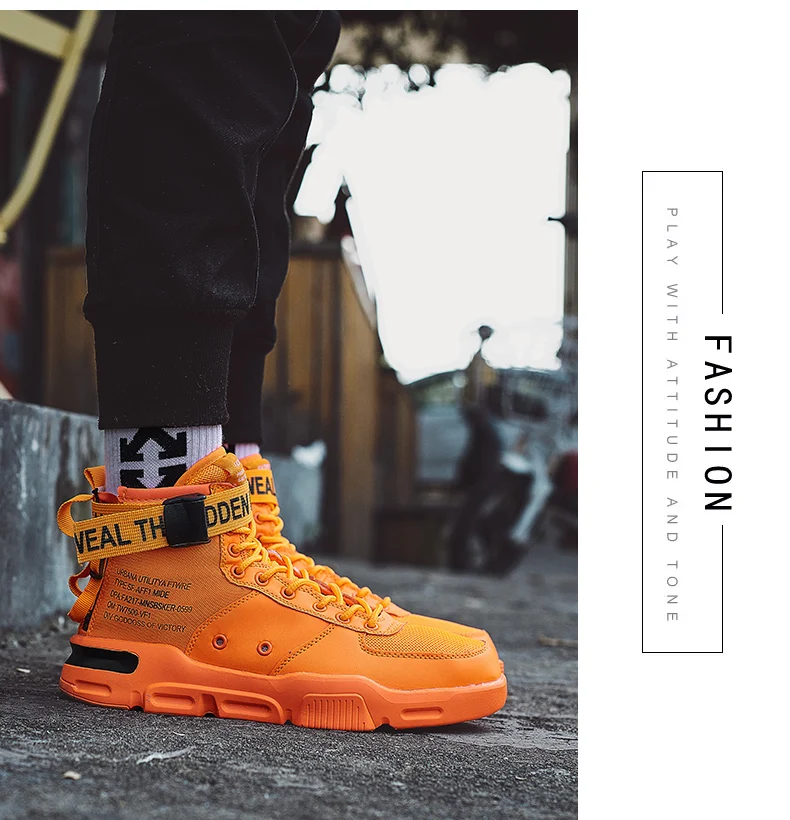 ✬✭✮Если вы не знаете, как выбрать, пожалуйста, свяжитесь с нами.♈Описание товара:Оранжевые мужские кроссовки с высоким берцем на весну и осень, высококачественные дышащие кроссовки, мужская повседневная обувь, модные белые мужские высокие кроссовки