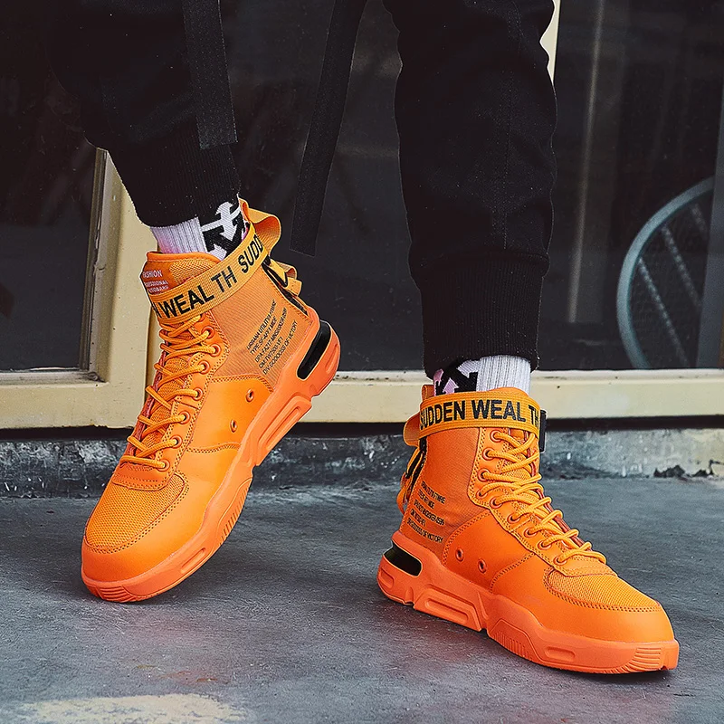 Кроссовки мужские высокие, дышащие, Повседневная модная обувь, оранжевые, белые, весна-осень