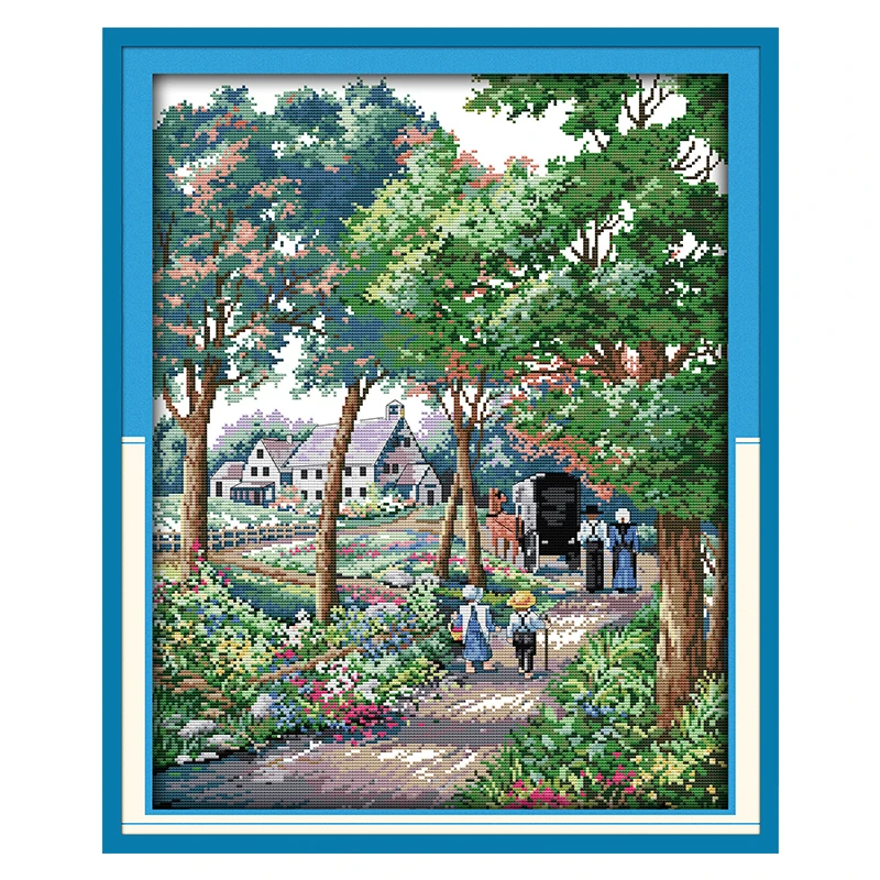 Joy Sunday, пейзаж парка, Китайская вышивка крестиком, печать на хо...