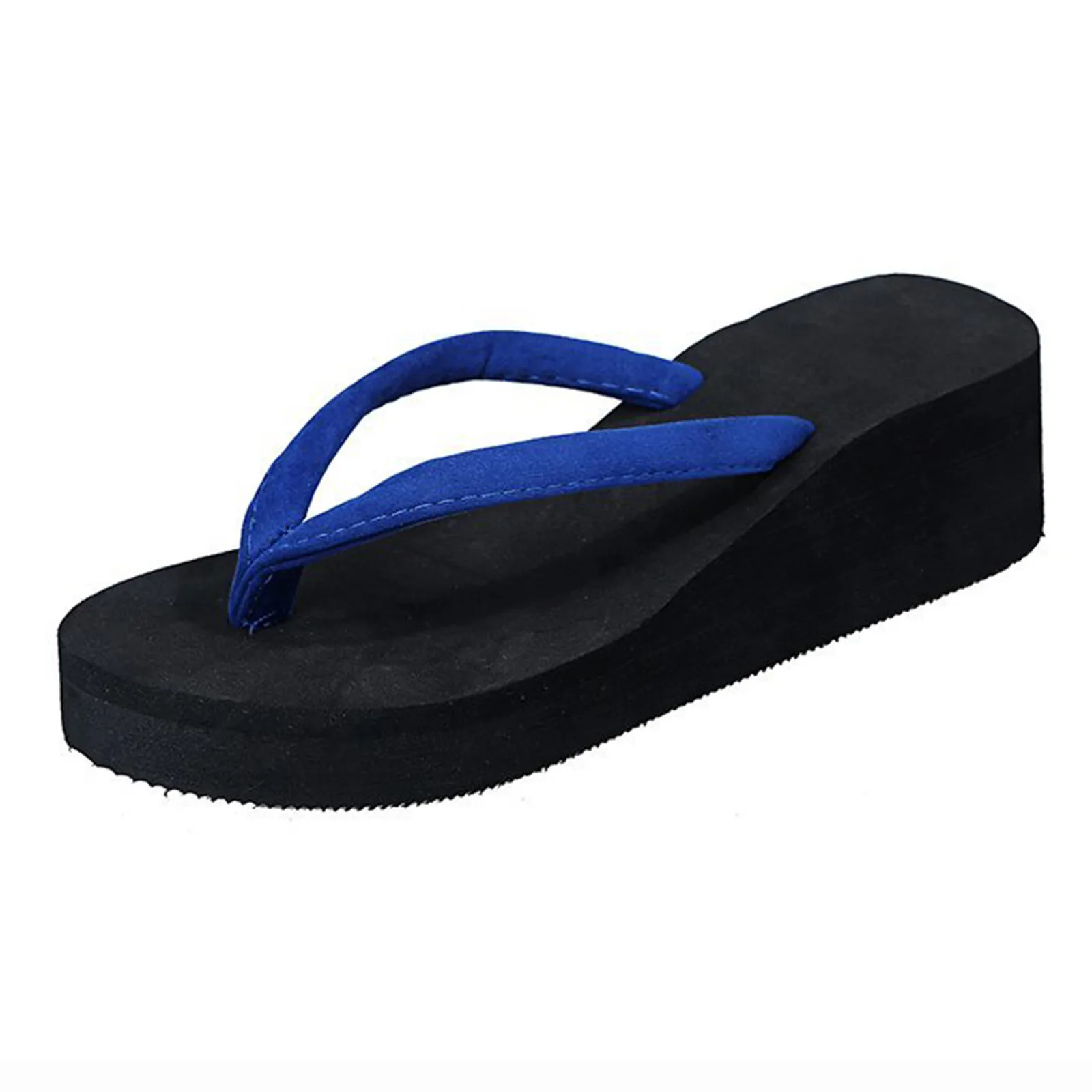Сандалии Женские однотонные, богемные шлепанцы на платформе, уличная пляжная обувь на толстой подошве, танкетка, лето