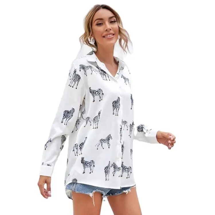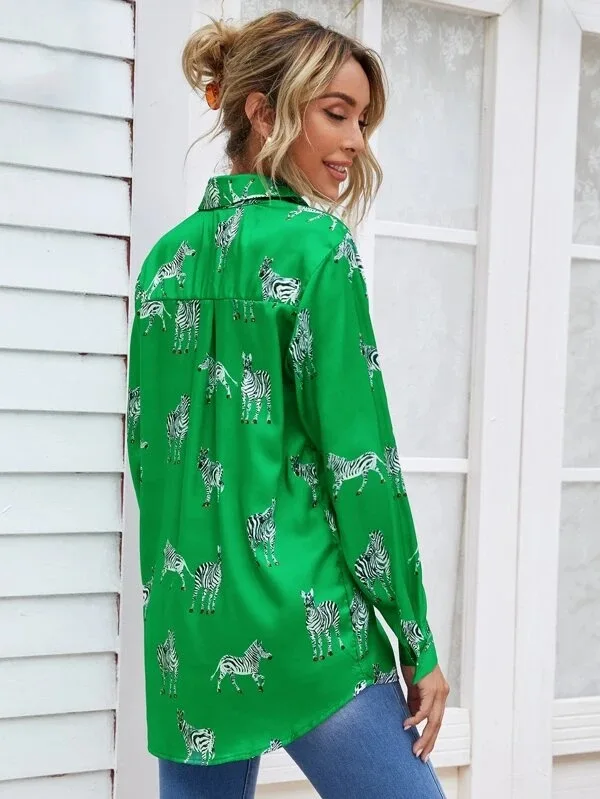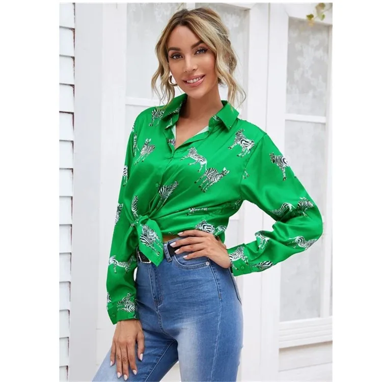 Женская атласная рубашка с принтом зебры, свободная офисная рубашка с длинным рукавом и отложным воротником в стиле ретро, осень 2021