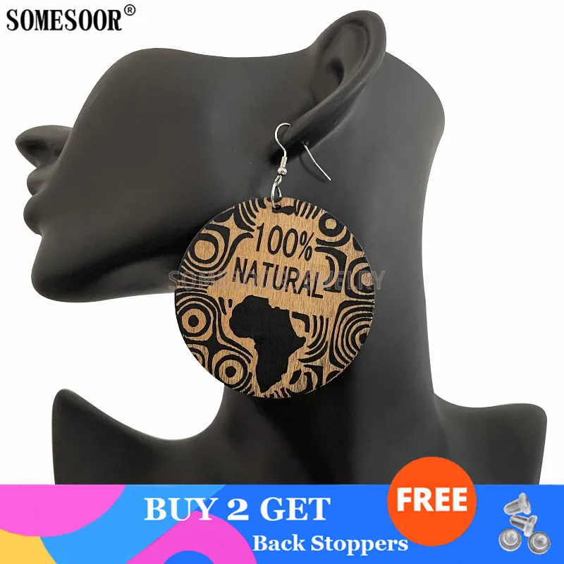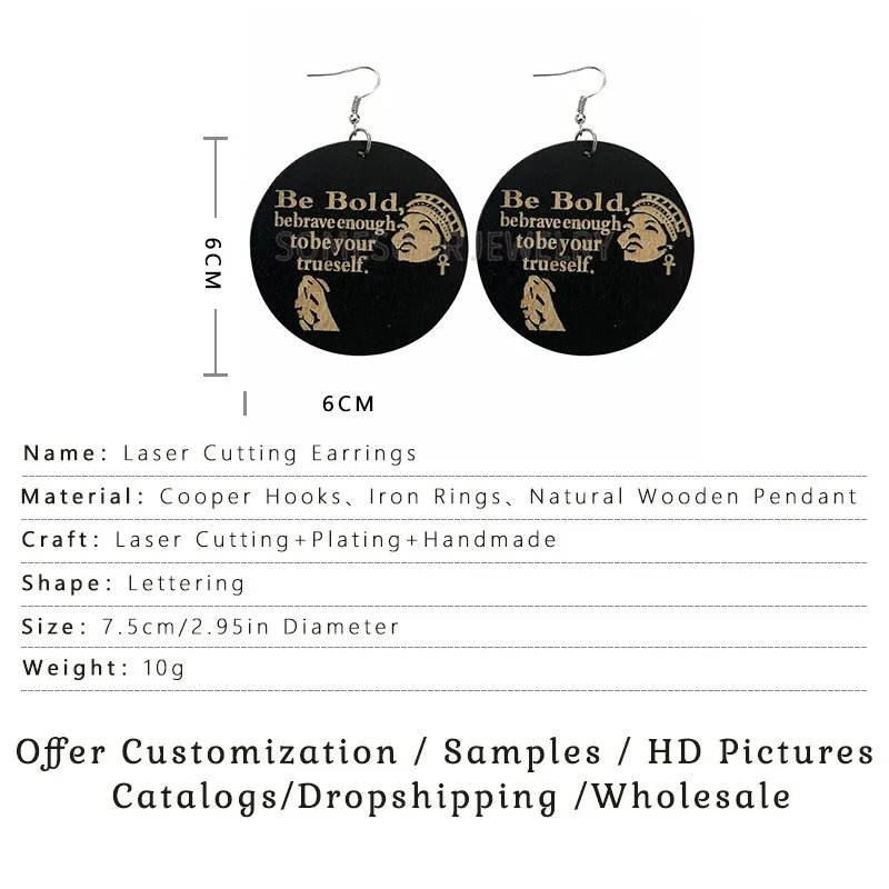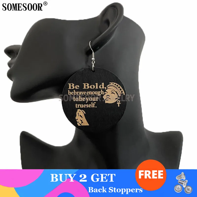 Ювелирные изделия SOMESOOR, круглые односторонние лазерные гравировки, будьте смелыми и смелыми, натуральные Woden, висячие серьги для женщин, подарки
