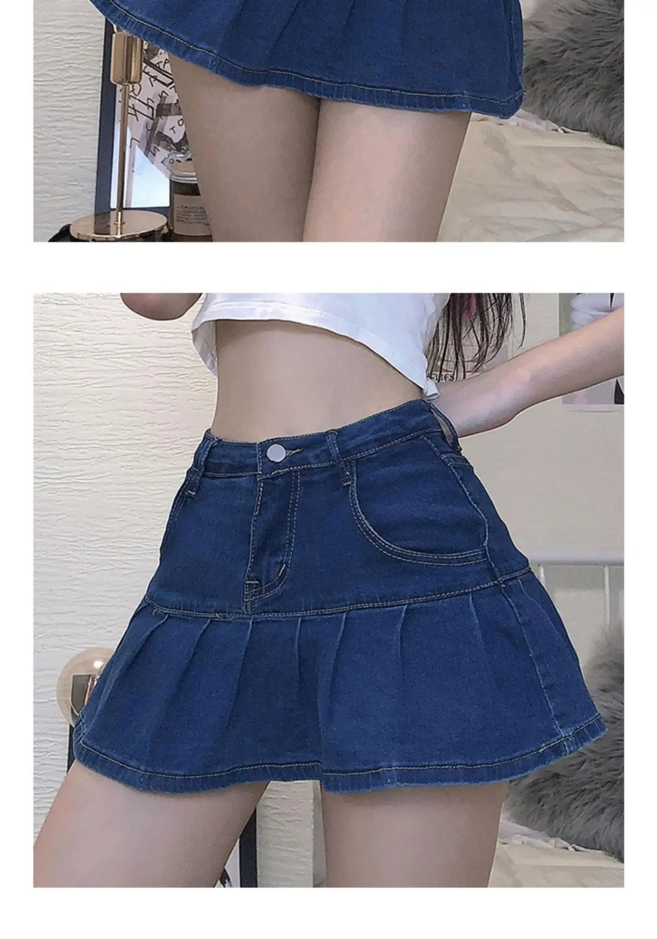 Женская джинсовая мини-юбка в стиле Харадзюку, Летние Плиссированны...