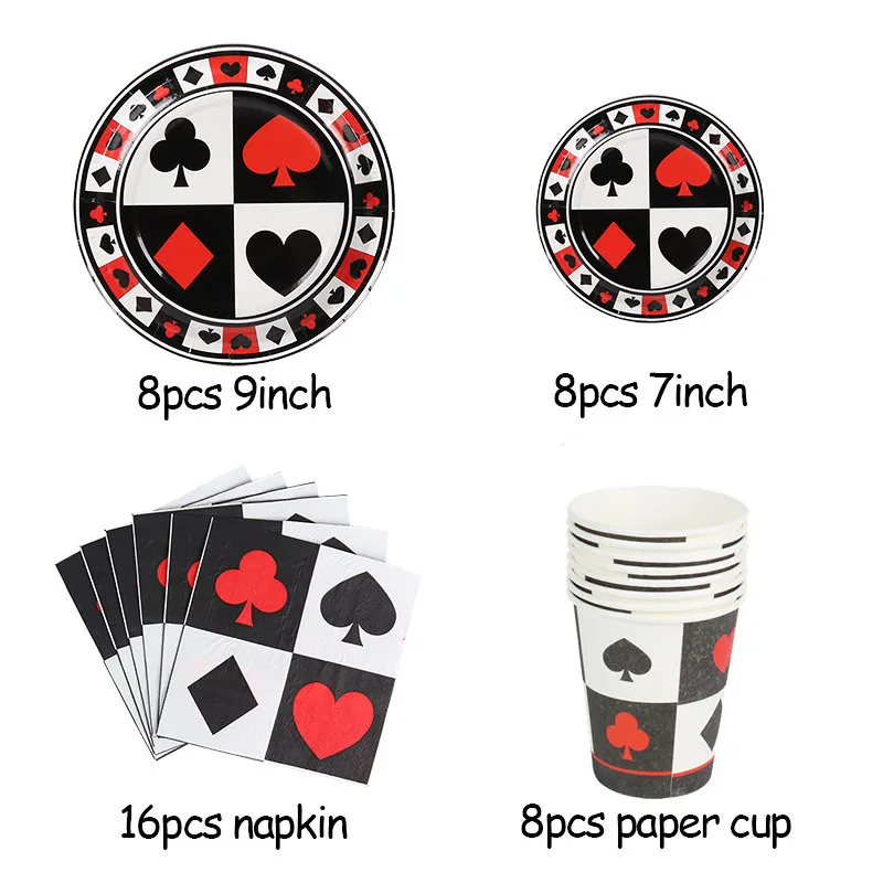 Тематическое украшение казино, игральные карты, одноразовая посуда,...