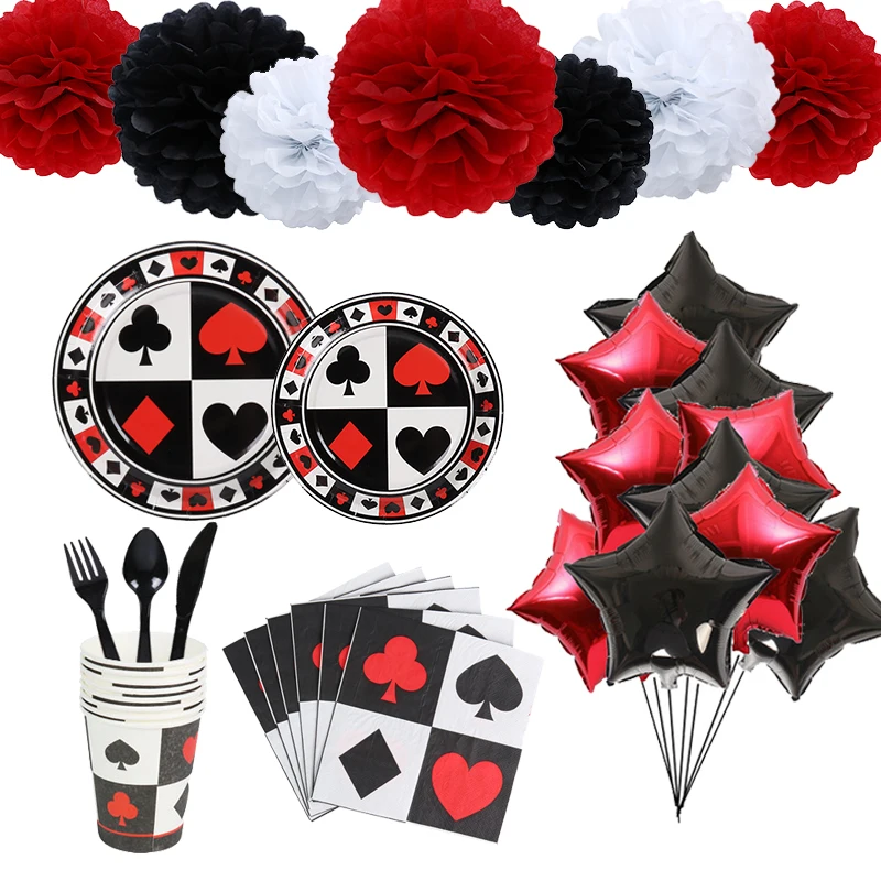 Украшение для тематической вечеринки в казино, принадлежности для вечерние, бумажные фотообои, черные красные воздушные шары, украшения для вечеривечерние в Лас-Вегасе, волшебное шоу