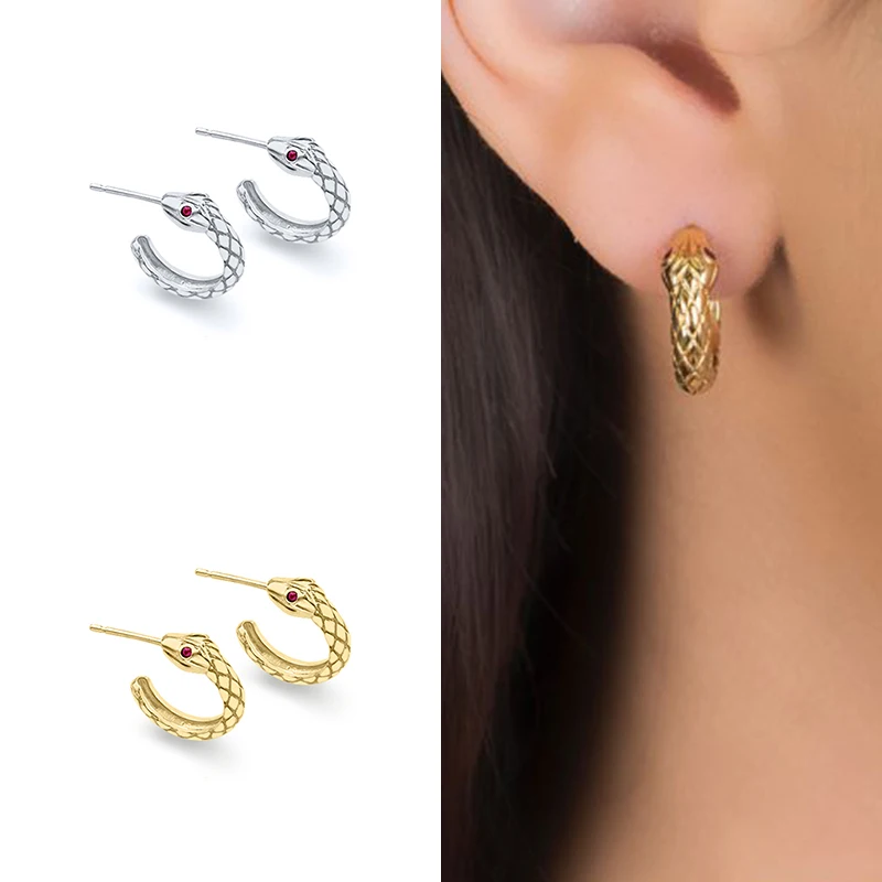 Женские серьги-кольца из серебра 925 пробы с цирконом